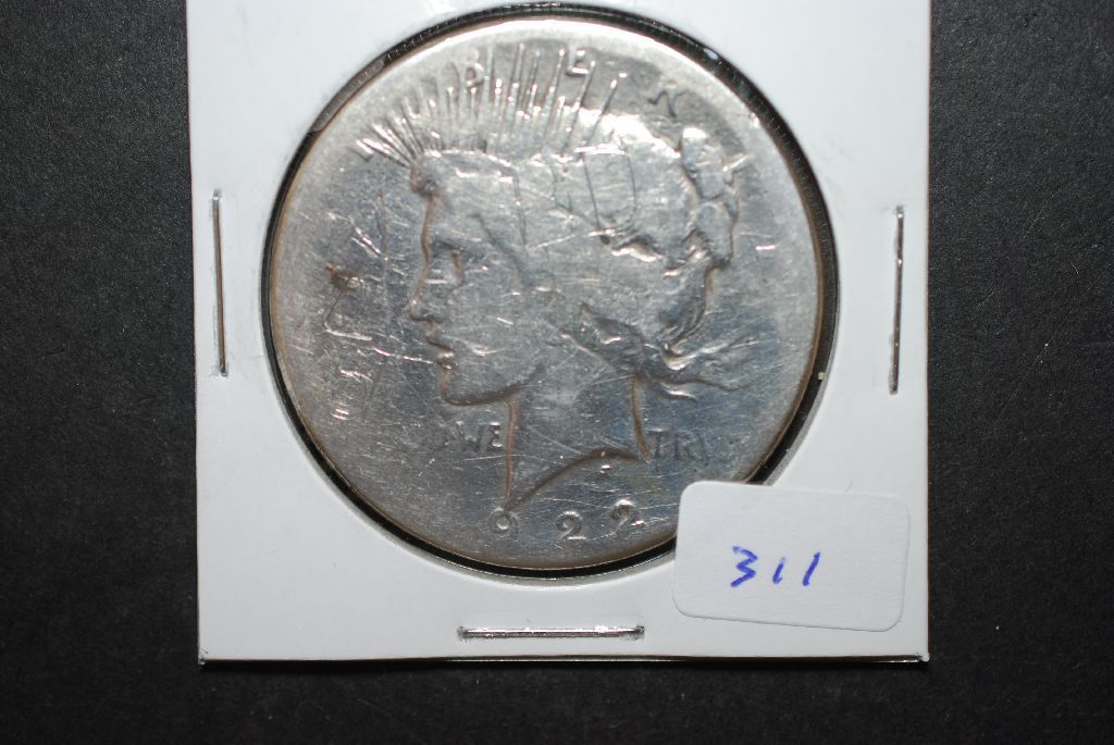 1922-S US Peace $1 With Initials Carved On Obv.; Poor Condition; EST. $30-35
