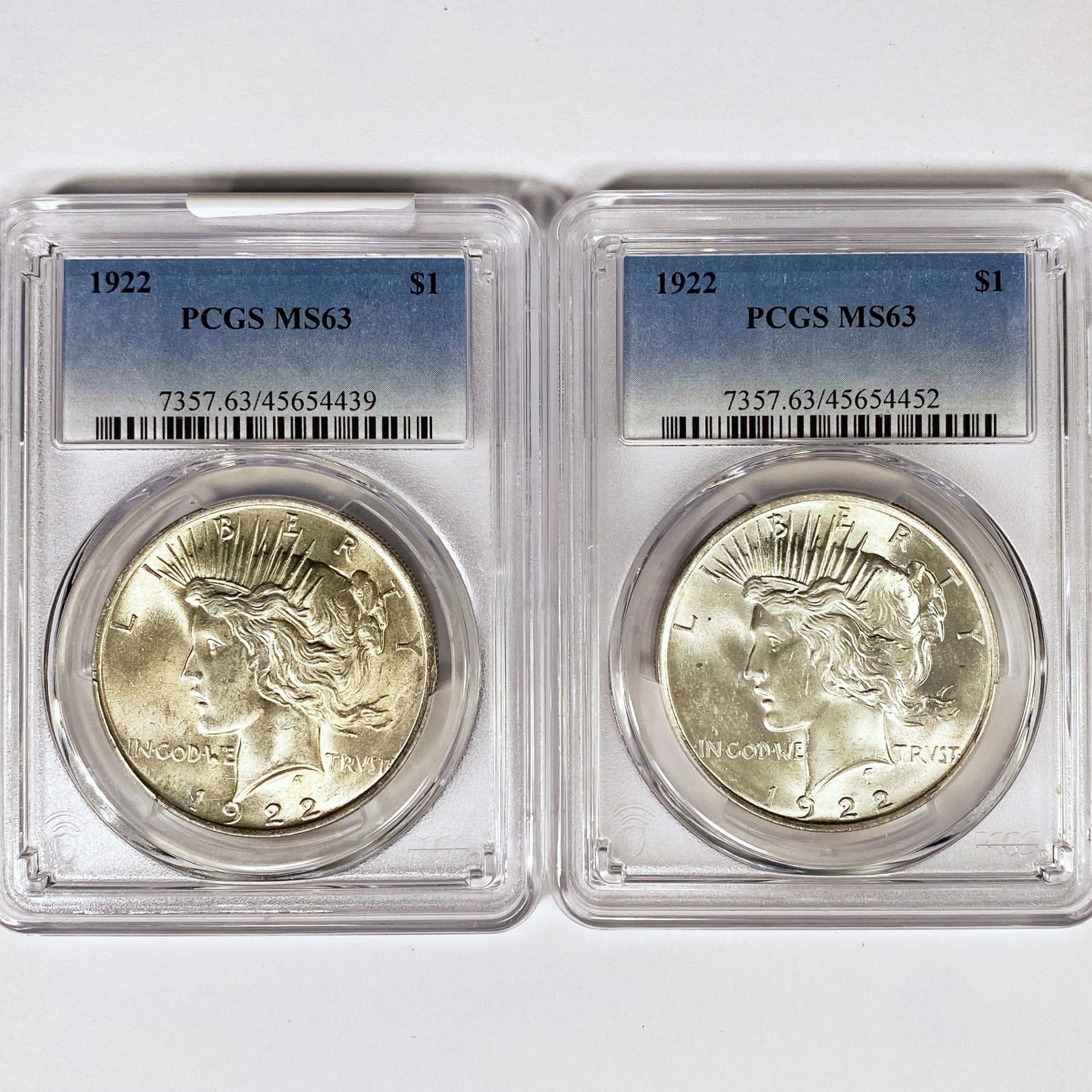 1922 Set (2) Silver Peace Dollar PCGS MS63