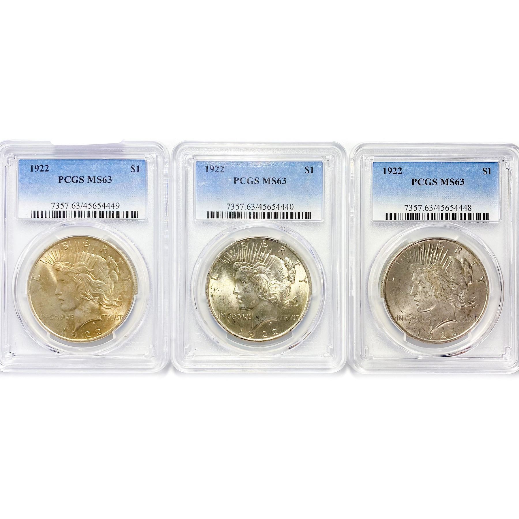 1922 Set (3) Silver Peace Dollar PCGS MS63