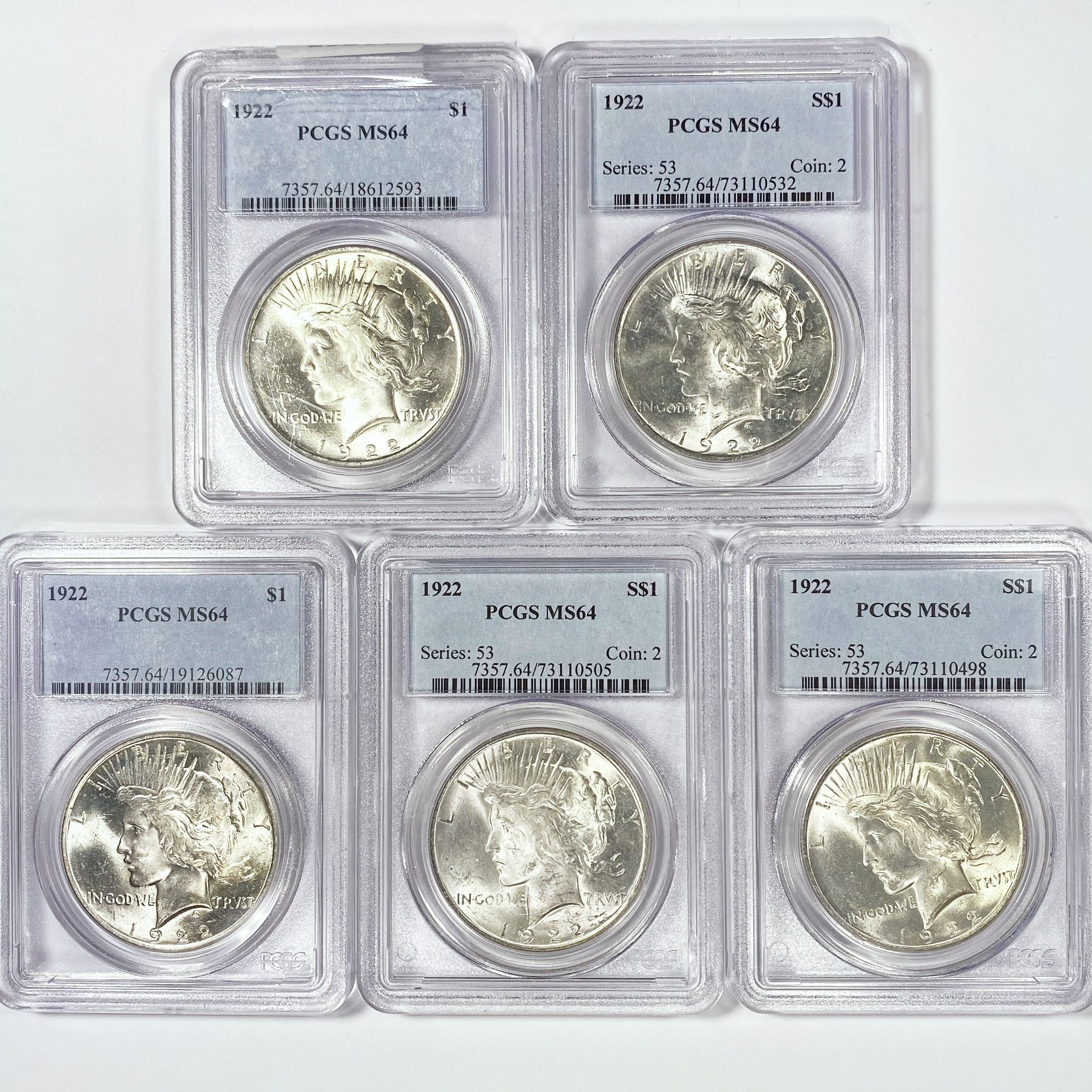 1922 Set (5) Silver Peace Dollar PCGS MS64