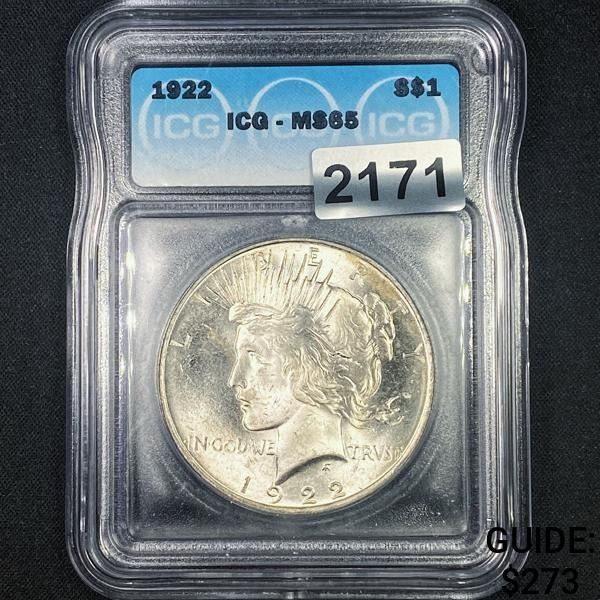 1922 Silver Peace Dollar ICG - MS65