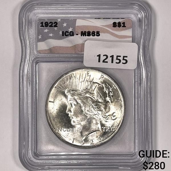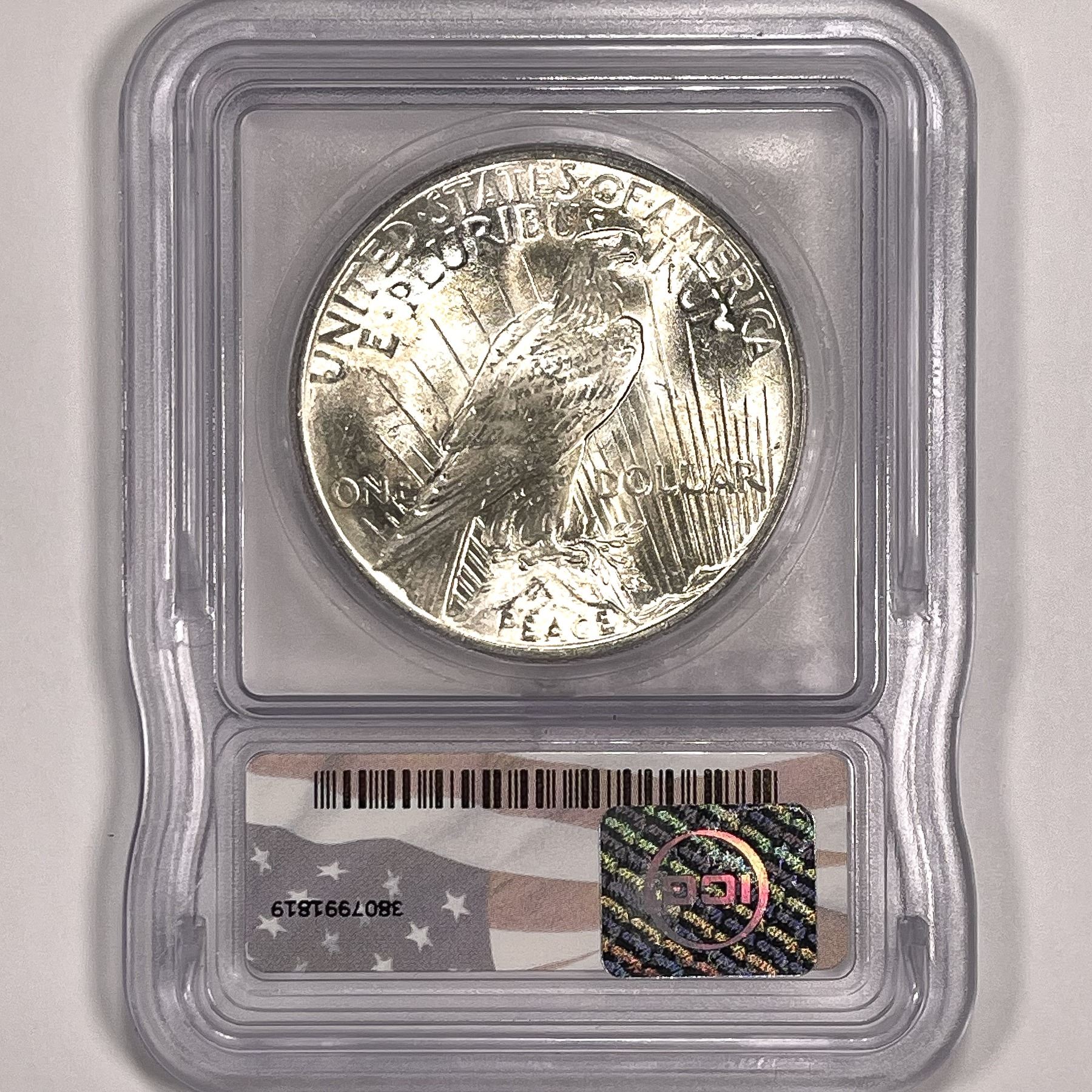 1922 Silver Peace Dollar ICG-MS65