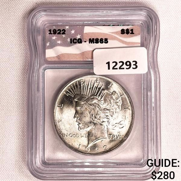 1922 Silver Peace Dollar ICG-MS65
