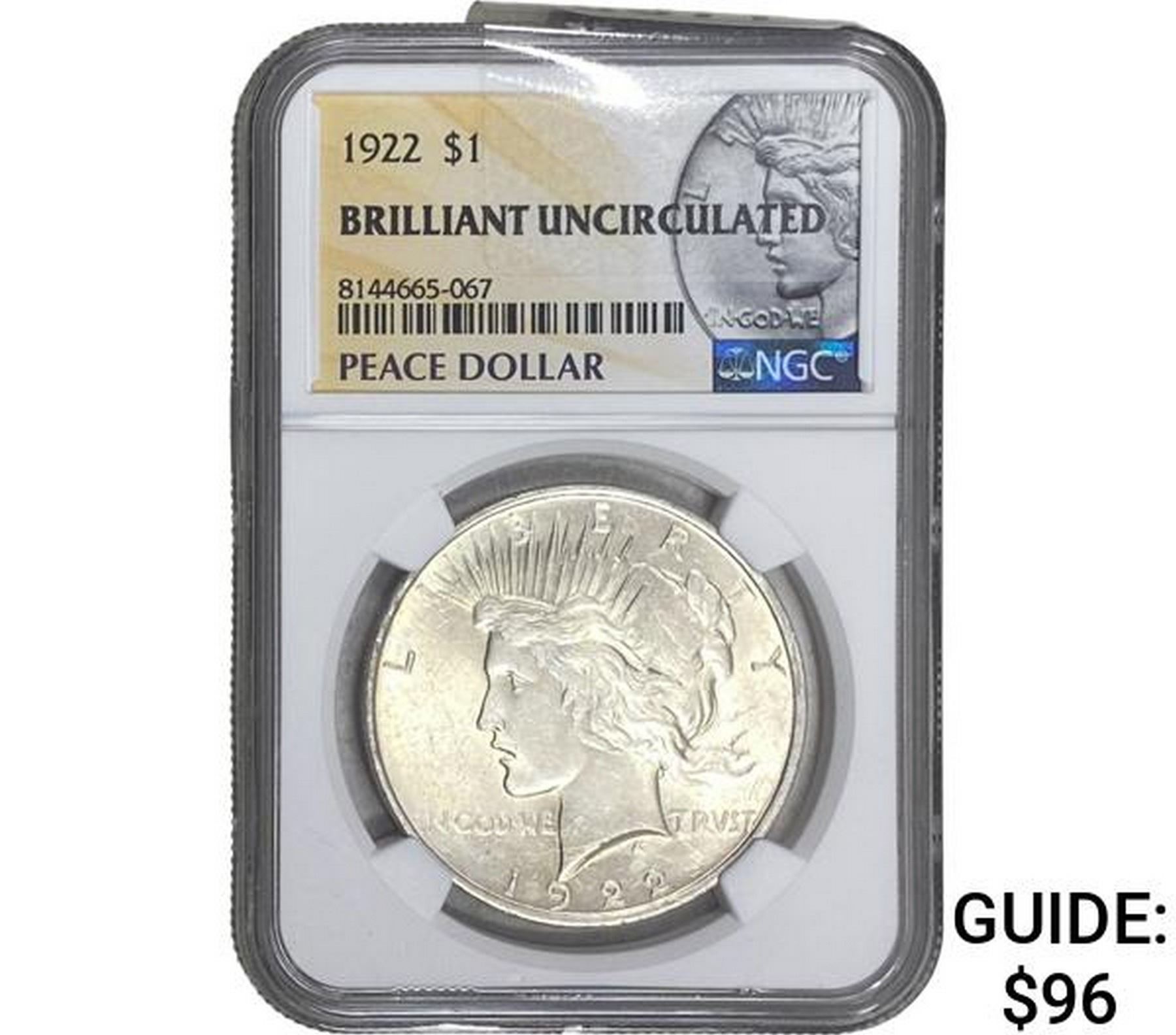 1922 Silver Peace Dollar NGC BRILLIANT UNC