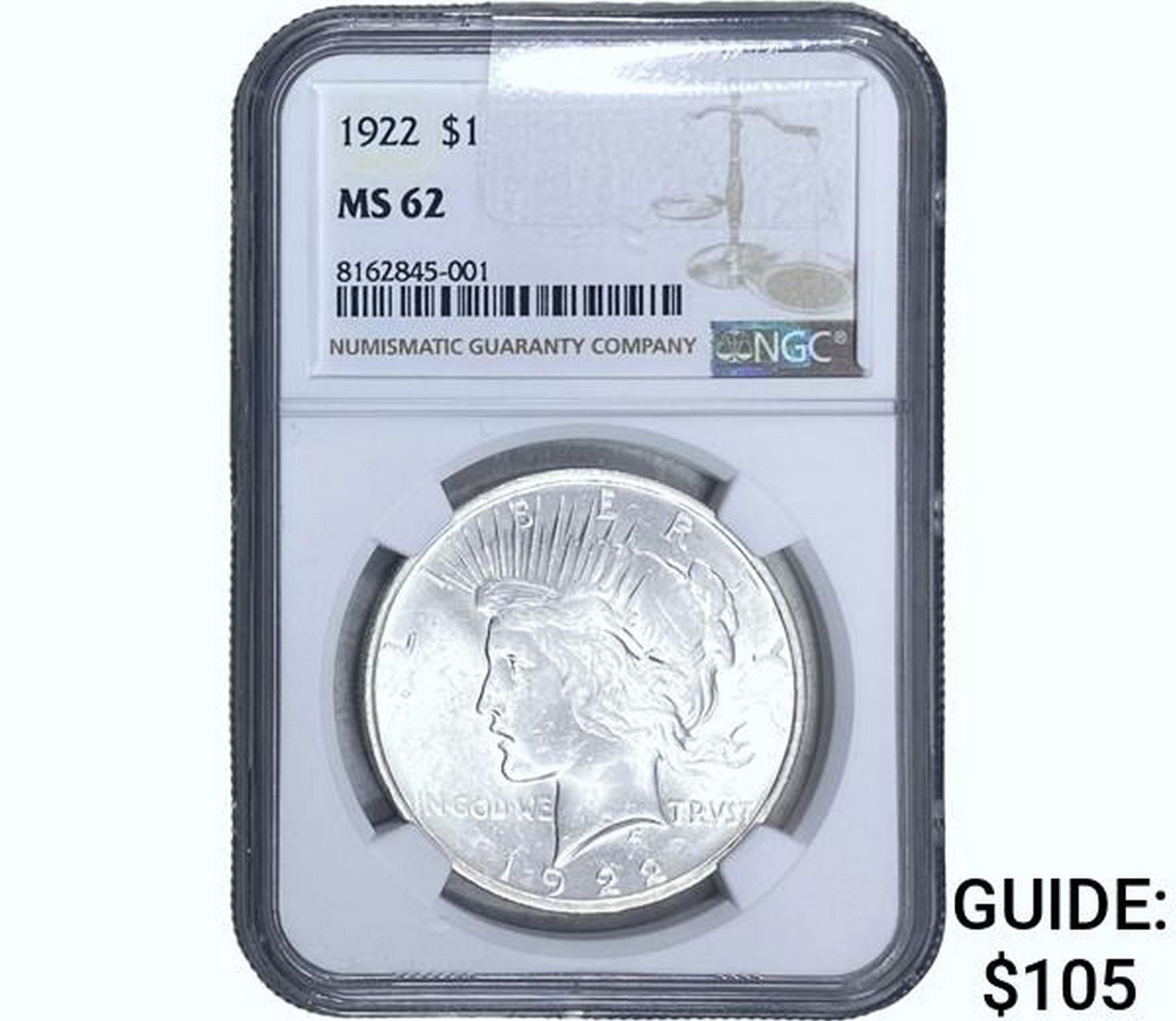 1922 Silver Peace Dollar NGC MS62