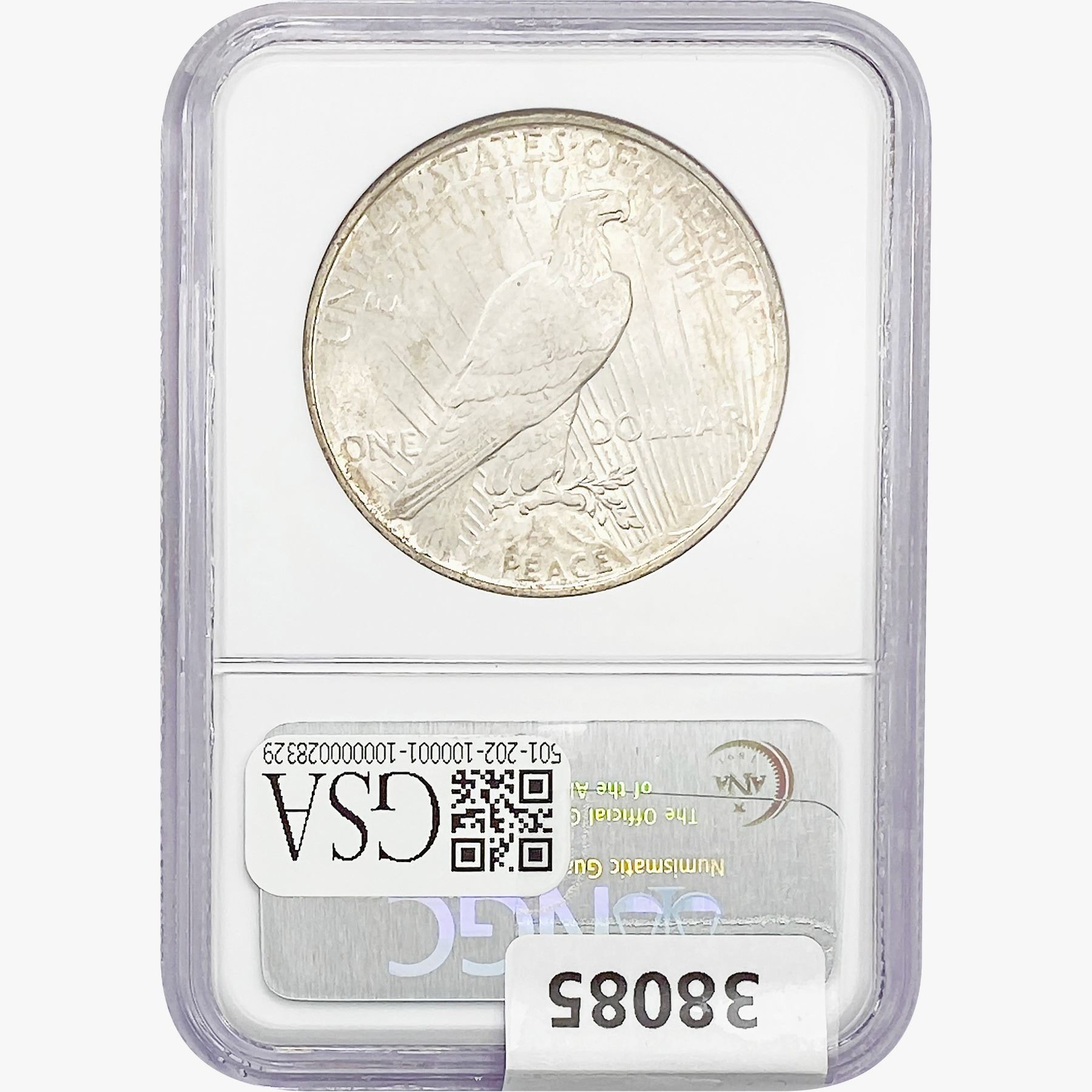 COINS AND CURRENCY LISTED IN GSA’S CATALOG AS GRADED AND ENCAPSULATED BY PCGS, NGC, ANACS, ICG, PCGS CURRENCY, PMG, PCGS BANKNOTE GRADING, CMC OR ANY OTHER THIRD-PARTY GRADING SERVICE ARE LIKEWISE SOLD “AS-IS” EXCEPT AS EXPRESSLY SET FORTH HEREIN. ALL THIRD-PARTY GRADING SERVICE GUARANTEES, INCLUDING AUTHENTICITY, ARE THE SOLE RESPONSIBILITY OF THE THIRD-PARTY GRADING SERVICE AND NOT WARRANTIES OR GUARANTEES OF GSA. BIDDERS SHOULD CONTACT THESE THIRD-PARTY GRADING SERVICES DIRECTLY WITH RESPECT TO ANY CLAIMS OR QUESTIONS THEY MAY HAVE CONCERNING THEIR GUARANTEES AND WARRANTIES. BIDDERS ACKNOWLEDGE AND AGREE THAT AUCTIONEER IS NOT BOUND BY OR LIABLE FOR ANY OPINION OR CERTIFICATION BY ANY THIRD-PARTY GRADING SERVICE. REMOVAL OF A PRODUCT FROM ITS PROTECTIVE CASING OR HOLDER OR ALTERATION OF ANY COIN HOLDER WAIVES ALL RIGHTS CONCERNING THE PRODUCT CONTAINED THEREIN.