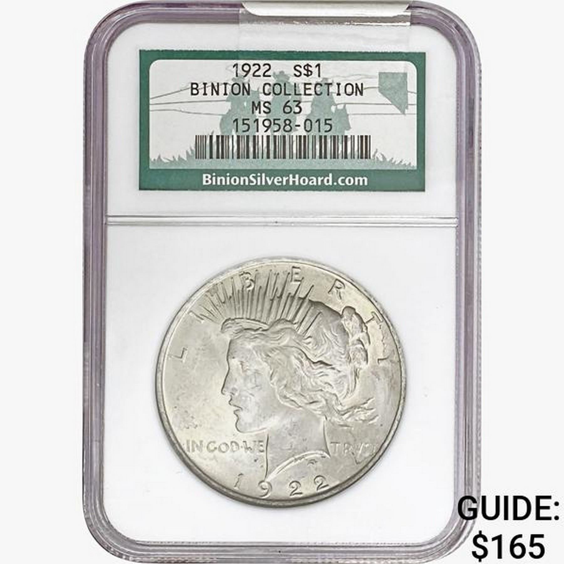 1922 Silver Peace Dollar NGC MS63