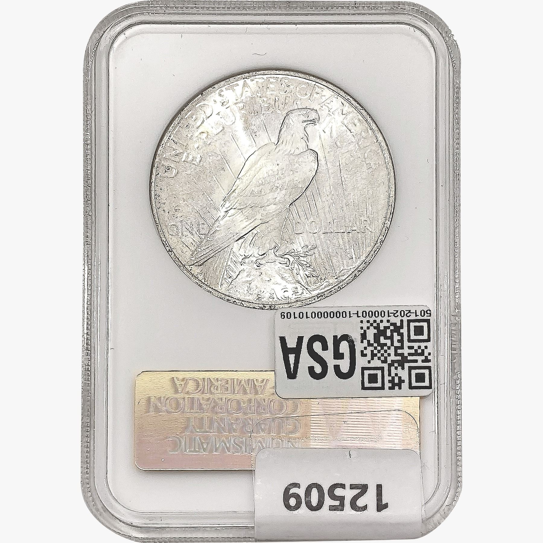l. All non-certified coins and currency are guaranteed genuine, but are not guaranteed as to grade, since grading is a matter of opinion, an art and not a science, and therefore the description rendered by GSA or any third-party grading service may not agree with the opinion of others (including trained experts), and the same expert may not grade the same item with the same grade at two different times. GSA may, but is not obligated to, express an opinion as to non-certified numismatic items, in GSA’s opinion, or by its employees’ experience and the current interpretation of the American Numismatic Association’s standards as of the date the catalog was prepared. There is no guarantee or warranty expressed or implied that the grading opinions utilized by GSA, if any, will meet the standards of any grading service at any time in the future.