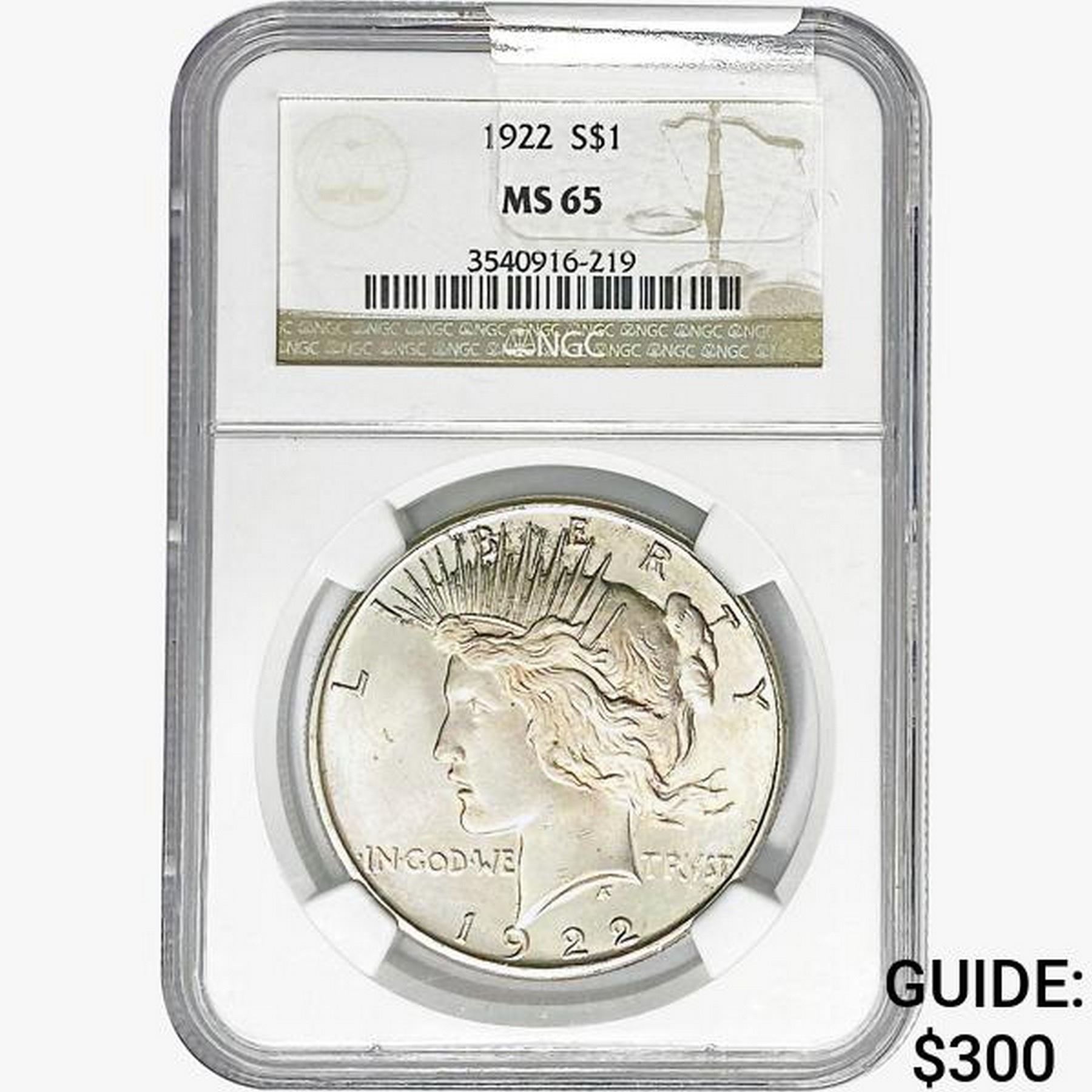 1922 Silver Peace Dollar NGC MS65