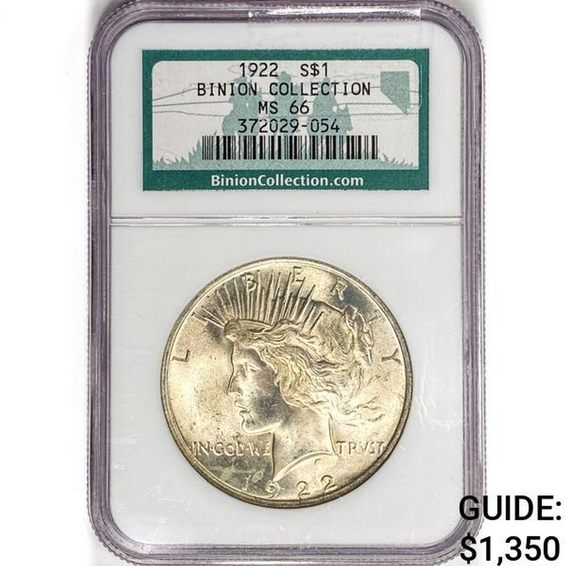 1922 Silver Peace Dollar NGC MS66 Binion COLL.
