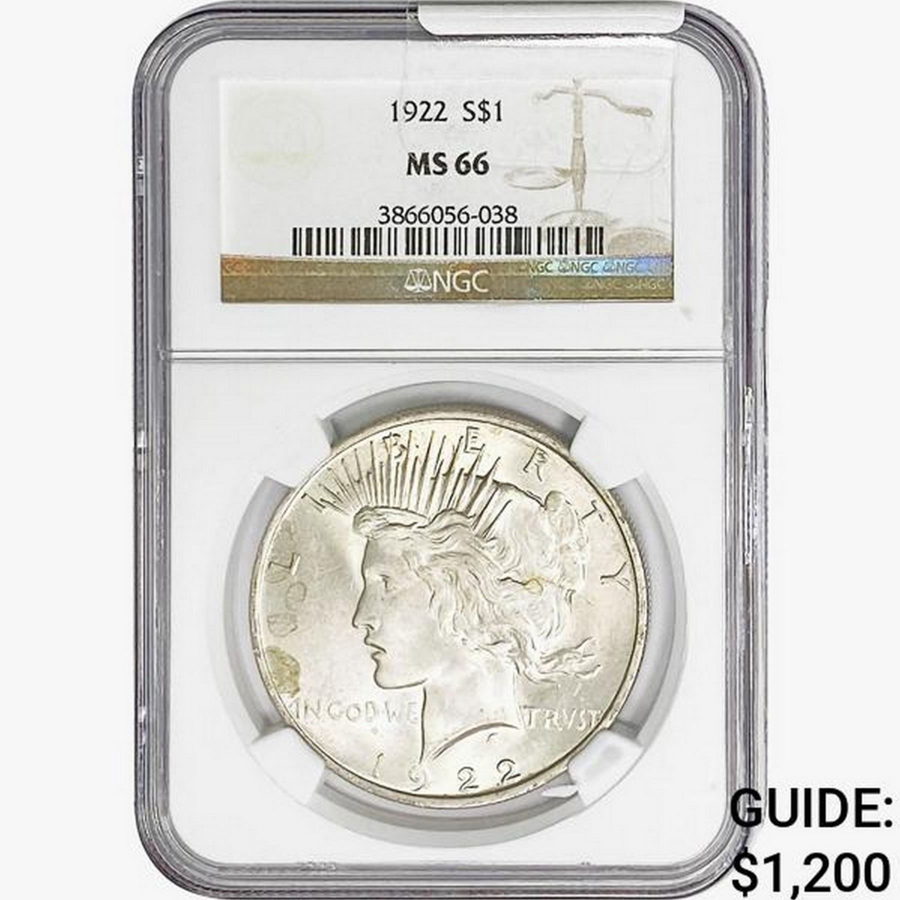 1922 Silver Peace Dollar NGC MS66