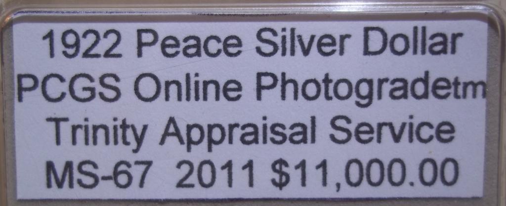 PCGS Online Photograde(tm) MS-67 Appraised at $11,000.00 by a Certified G.I.A. Appraiser from Trinity Appraisal Service, Control# F035366.