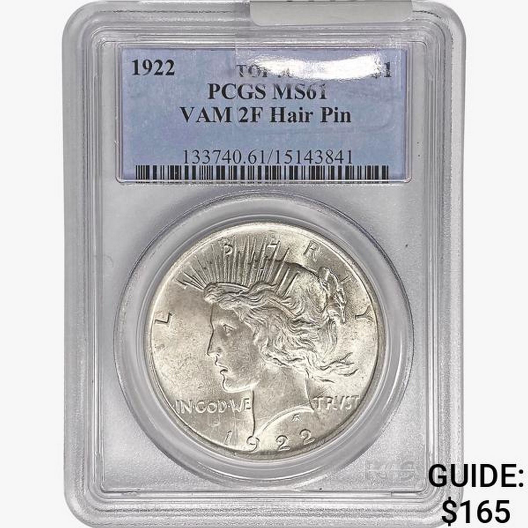 1922 Silver Peace Dollar PCGS MS61 VAM 2F Hair Pin