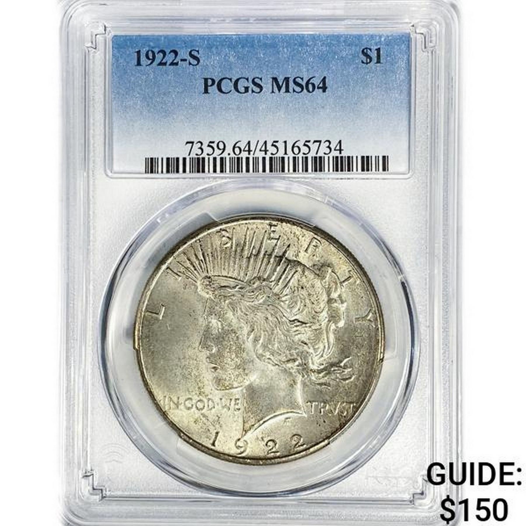 1922 Silver Peace Dollar PCGS MS64