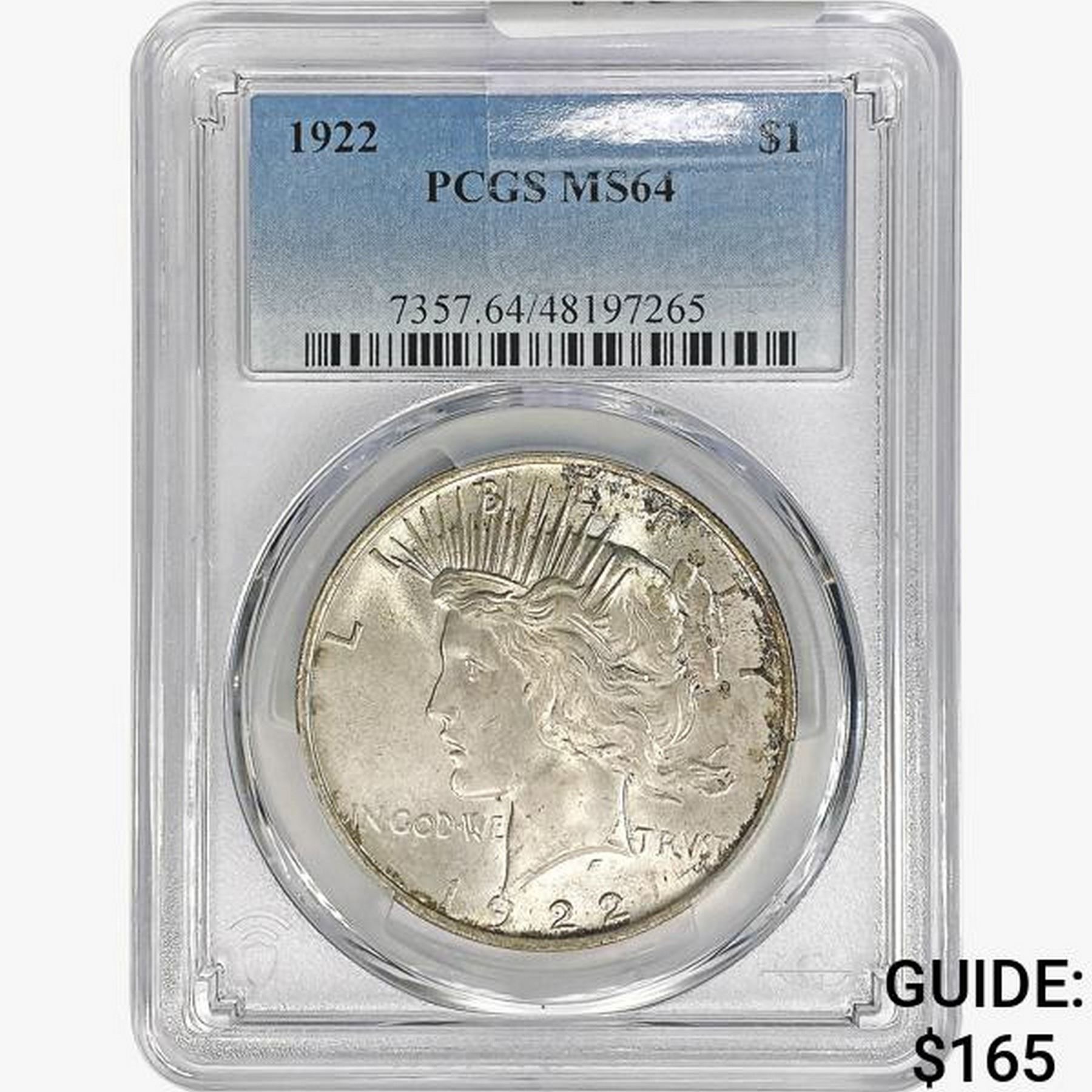 1922 Silver Peace Dollar PCGS MS64