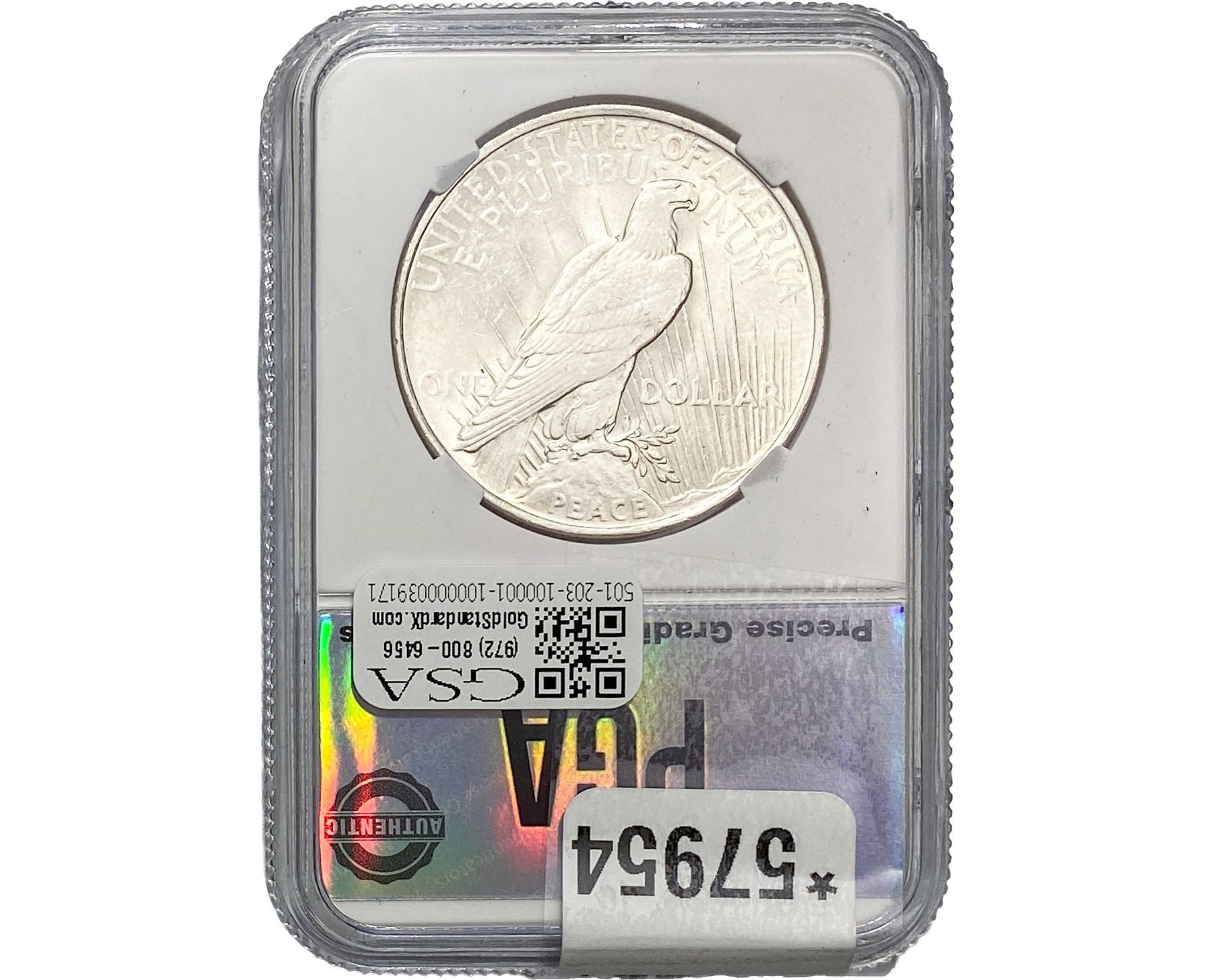 l. All non-certified coins and currency are guaranteed genuine, but are not guaranteed as to grade, since grading is a matter of opinion, an art and not a science, and therefore the description rendered by GSA or any third-party grading service may not agree with the opinion of others (including trained experts), and the same expert may not grade the same item with the same grade at two different times. GSA may, but is not obligated to, express an opinion as to non-certified numismatic items, in GSA’s opinion, or by its employees’ experience and the current interpretation of the American Numismatic Association’s standards as of the date the catalog was prepared. There is no guarantee or warranty expressed or implied that the grading opinions utilized by GSA, if any, will meet the standards of any grading service at any time in the future.