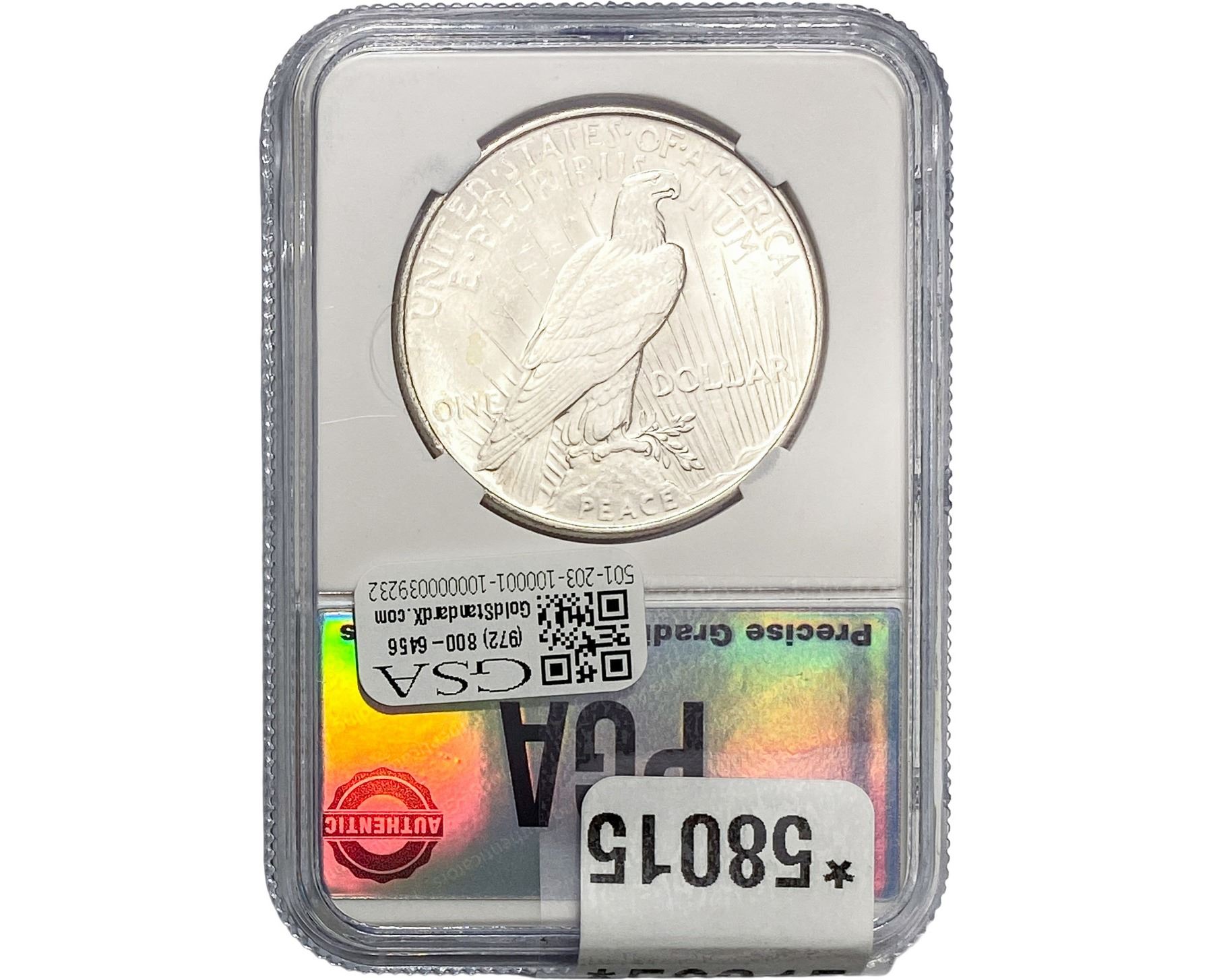 l. All non-certified coins and currency are guaranteed genuine, but are not guaranteed as to grade, since grading is a matter of opinion, an art and not a science, and therefore the description rendered by GSA or any third-party grading service may not agree with the opinion of others (including trained experts), and the same expert may not grade the same item with the same grade at two different times. GSA may, but is not obligated to, express an opinion as to non-certified numismatic items, in GSA’s opinion, or by its employees’ experience and the current interpretation of the American Numismatic Association’s standards as of the date the catalog was prepared. There is no guarantee or warranty expressed or implied that the grading opinions utilized by GSA, if any, will meet the standards of any grading service at any time in the future.