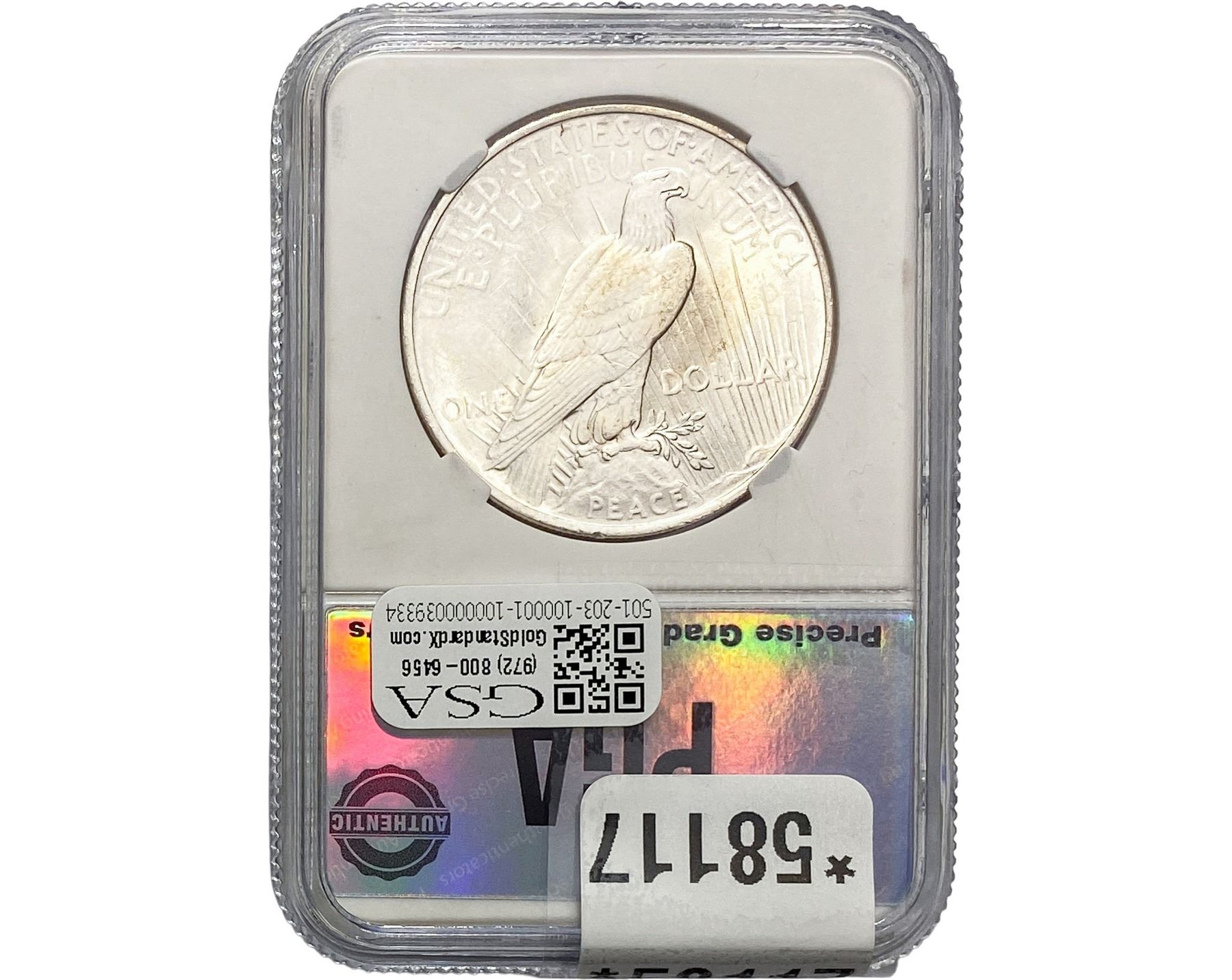 COINS AND CURRENCY LISTED IN GSA’S CATALOG AS GRADED AND ENCAPSULATED BY PCGS, NGC, ANACS, ICG, PCGS CURRENCY, PMG, PCGS BANKNOTE GRADING, CMC OR ANY OTHER THIRD-PARTY GRADING SERVICE ARE LIKEWISE SOLD “AS-IS” EXCEPT AS EXPRESSLY SET FORTH HEREIN. ALL THIRD-PARTY GRADING SERVICE GUARANTEES, INCLUDING AUTHENTICITY, ARE THE SOLE RESPONSIBILITY OF THE THIRD-PARTY GRADING SERVICE AND NOT WARRANTIES OR GUARANTEES OF GSA. BIDDERS SHOULD CONTACT THESE THIRD-PARTY GRADING SERVICES DIRECTLY WITH RESPECT TO ANY CLAIMS OR QUESTIONS THEY MAY HAVE CONCERNING THEIR GUARANTEES AND WARRANTIES. BIDDERS ACKNOWLEDGE AND AGREE THAT AUCTIONEER IS NOT BOUND BY OR LIABLE FOR ANY OPINION OR CERTIFICATION BY ANY THIRD-PARTY GRADING SERVICE. REMOVAL OF A PRODUCT FROM ITS PROTECTIVE CASING OR HOLDER OR ALTERATION OF ANY COIN HOLDER WAIVES ALL RIGHTS CONCERNING THE PRODUCT CONTAINED THEREIN.