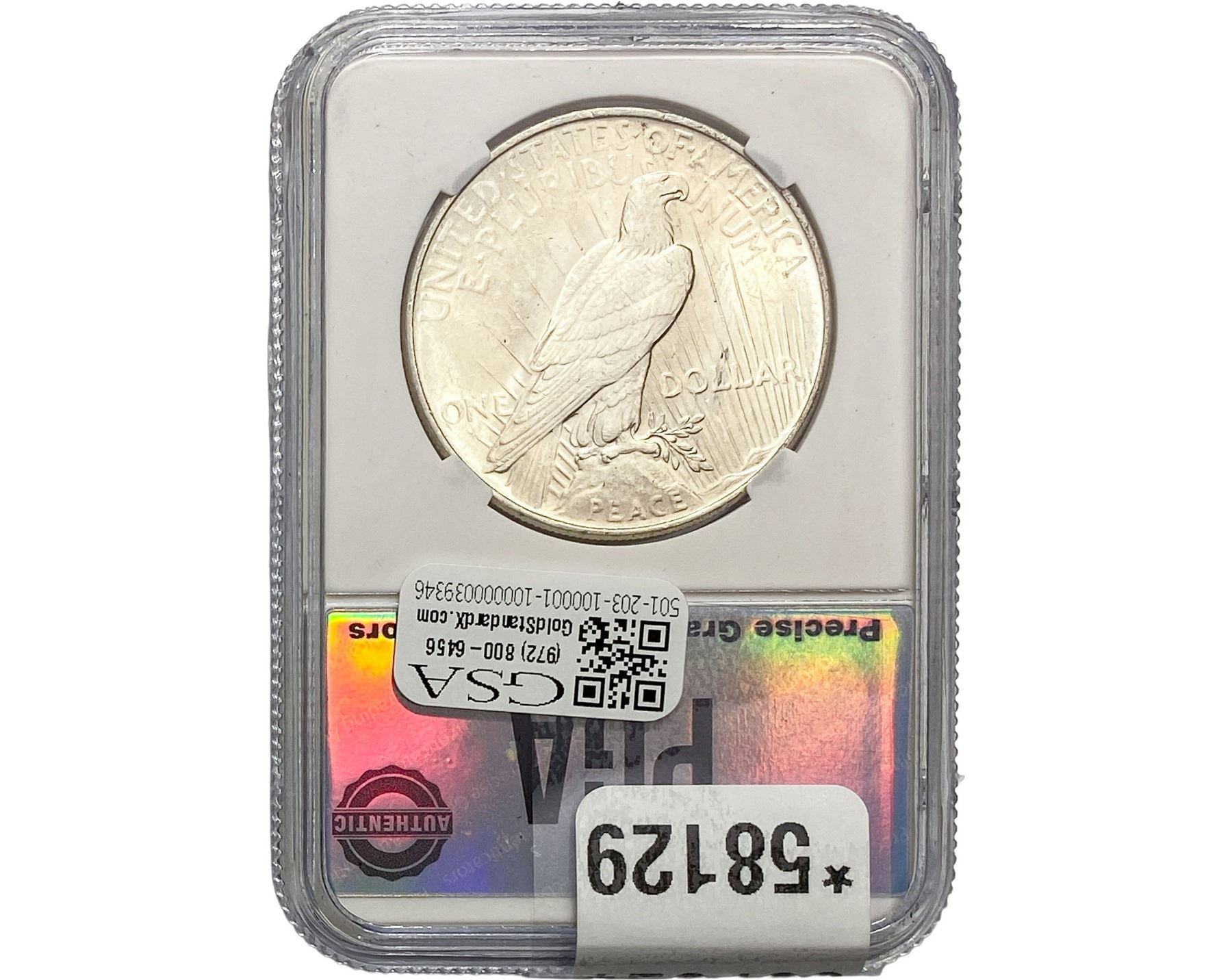 l. All non-certified coins and currency are guaranteed genuine, but are not guaranteed as to grade, since grading is a matter of opinion, an art and not a science, and therefore the description rendered by GSA or any third-party grading service may not agree with the opinion of others (including trained experts), and the same expert may not grade the same item with the same grade at two different times. GSA may, but is not obligated to, express an opinion as to non-certified numismatic items, in GSA’s opinion, or by its employees’ experience and the current interpretation of the American Numismatic Association’s standards as of the date the catalog was prepared. There is no guarantee or warranty expressed or implied that the grading opinions utilized by GSA, if any, will meet the standards of any grading service at any time in the future.