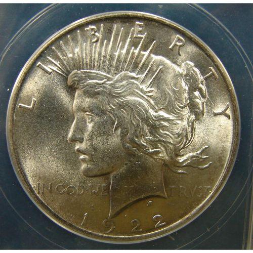 1922 U.S. PEACE DOLLAR. Graded by ANACS. MS 63.