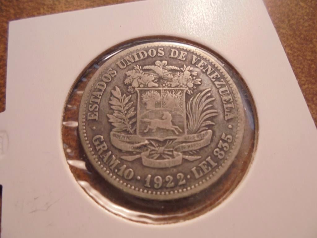 1922 VENEZUELA SILVER 2 BOLIVAR