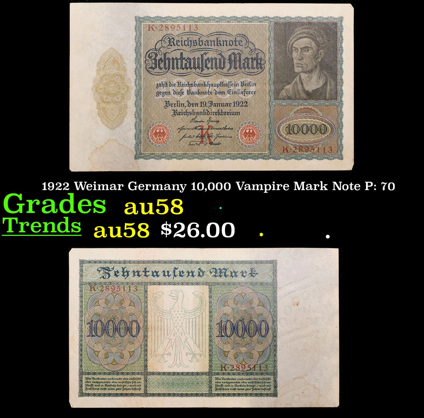 1922 Weimar Germany 10,000 Vampire Mark Note P: 70 Grades Choice AU/BU Slider