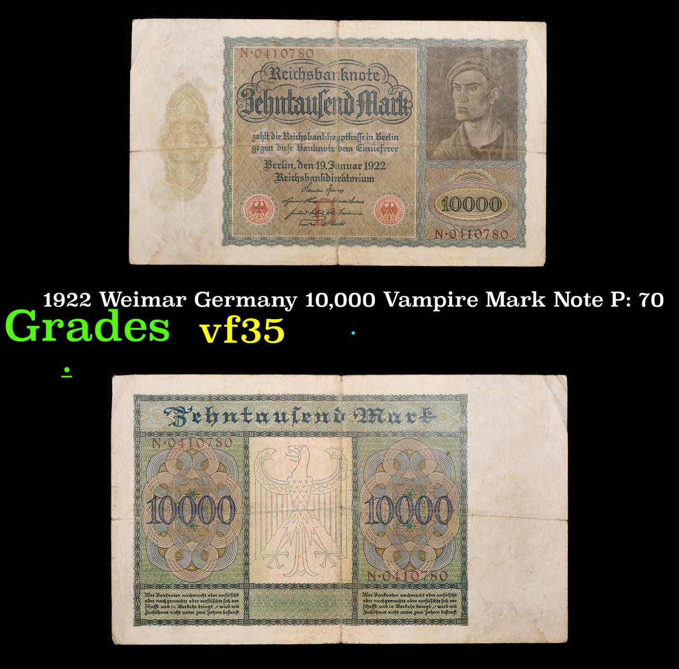 1922 Weimar Germany 10,000 Vampire Mark Note P: 70 Grades vf++.