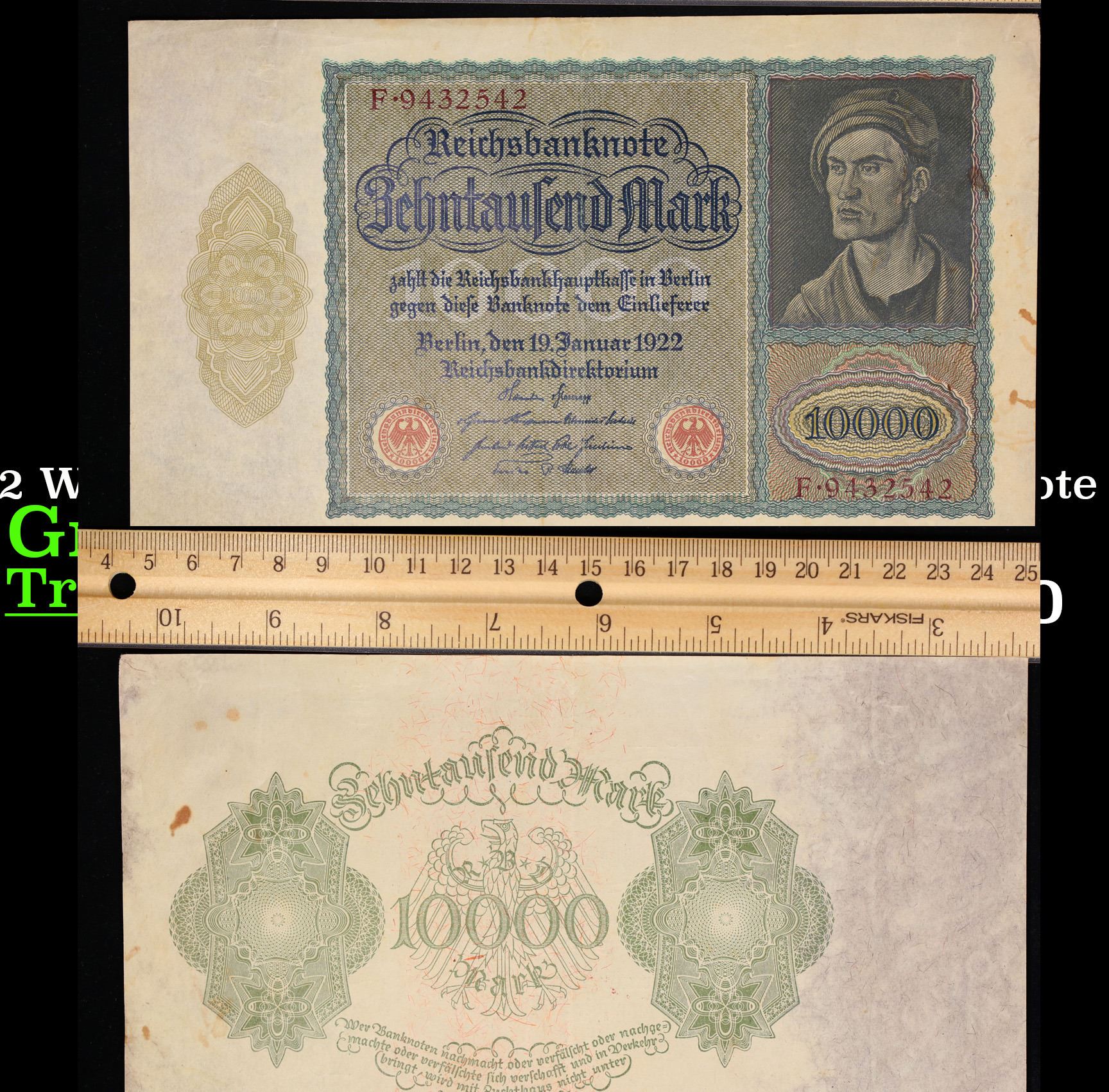 1922 Weimar Germany 10,000 Vampire Mark Note P# 72 Grades Choice AU/BU Slider