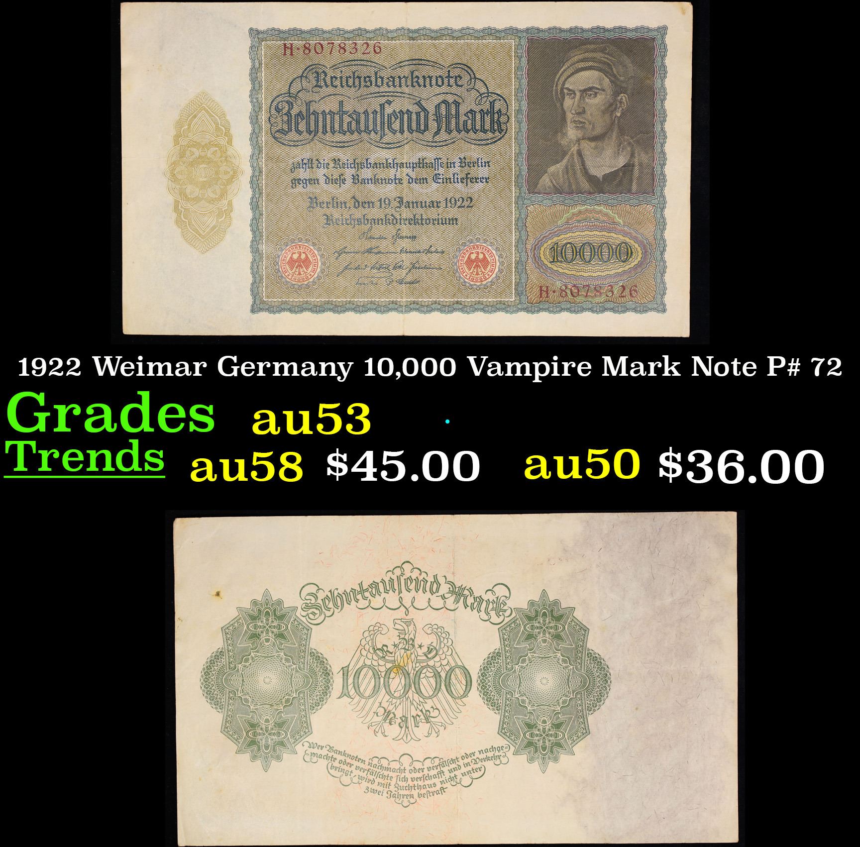 1922 Weimar Germany 10,000 Vampire Mark Note P# 72 Grades Select AU