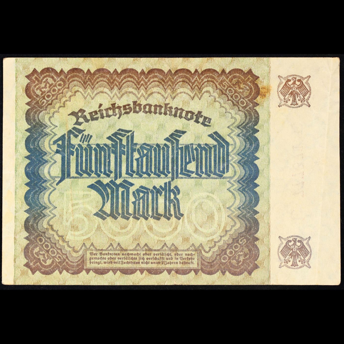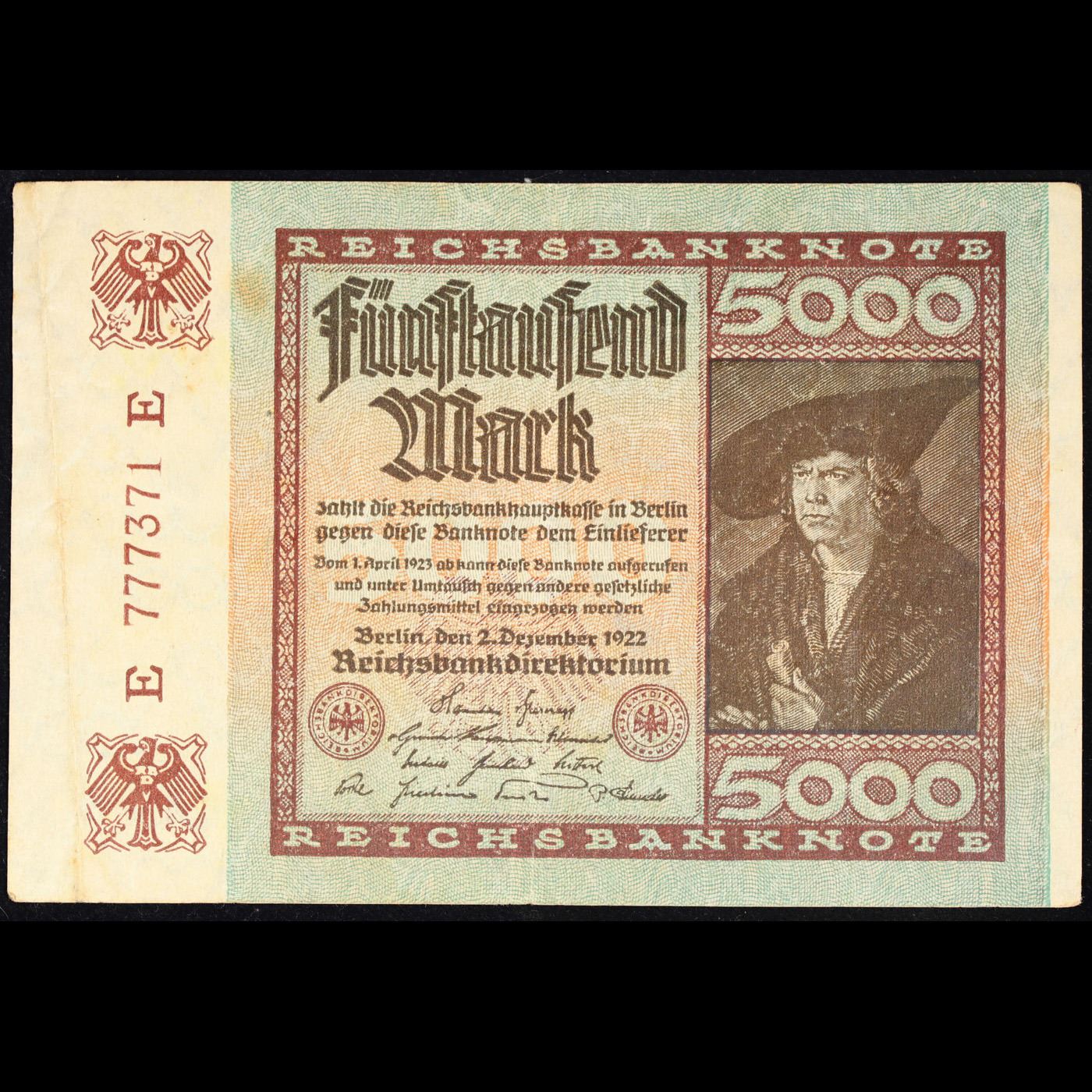 1922 Weimar Germany 5,000 Mark Note P# 81B Grades Choice AU/BU Slider.