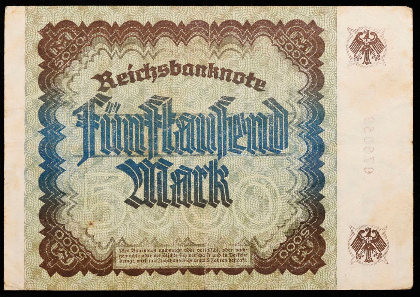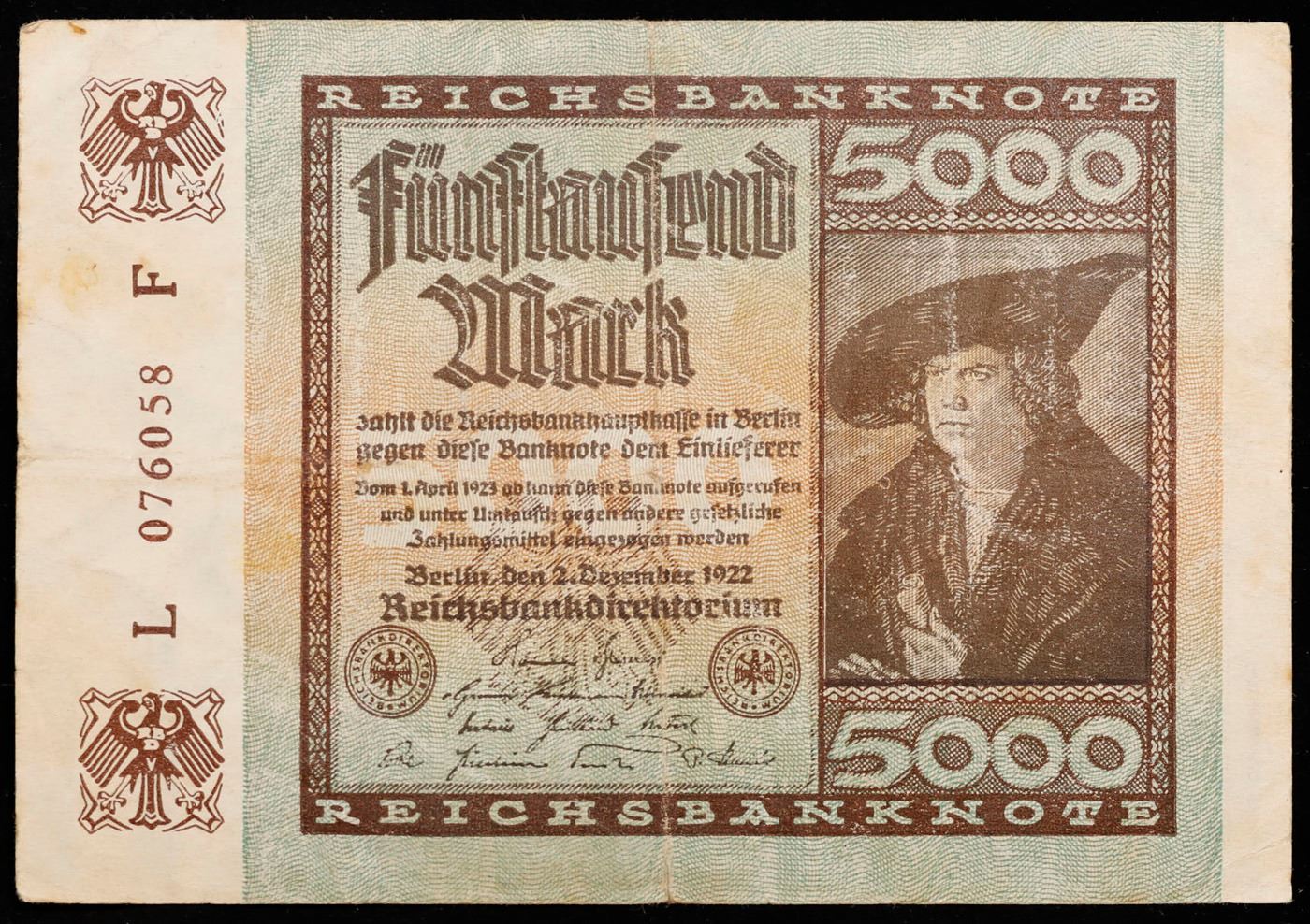 1922 Weimar Germany 5,000 Mark Note P: 81B Grades Choice AU/BU Slider