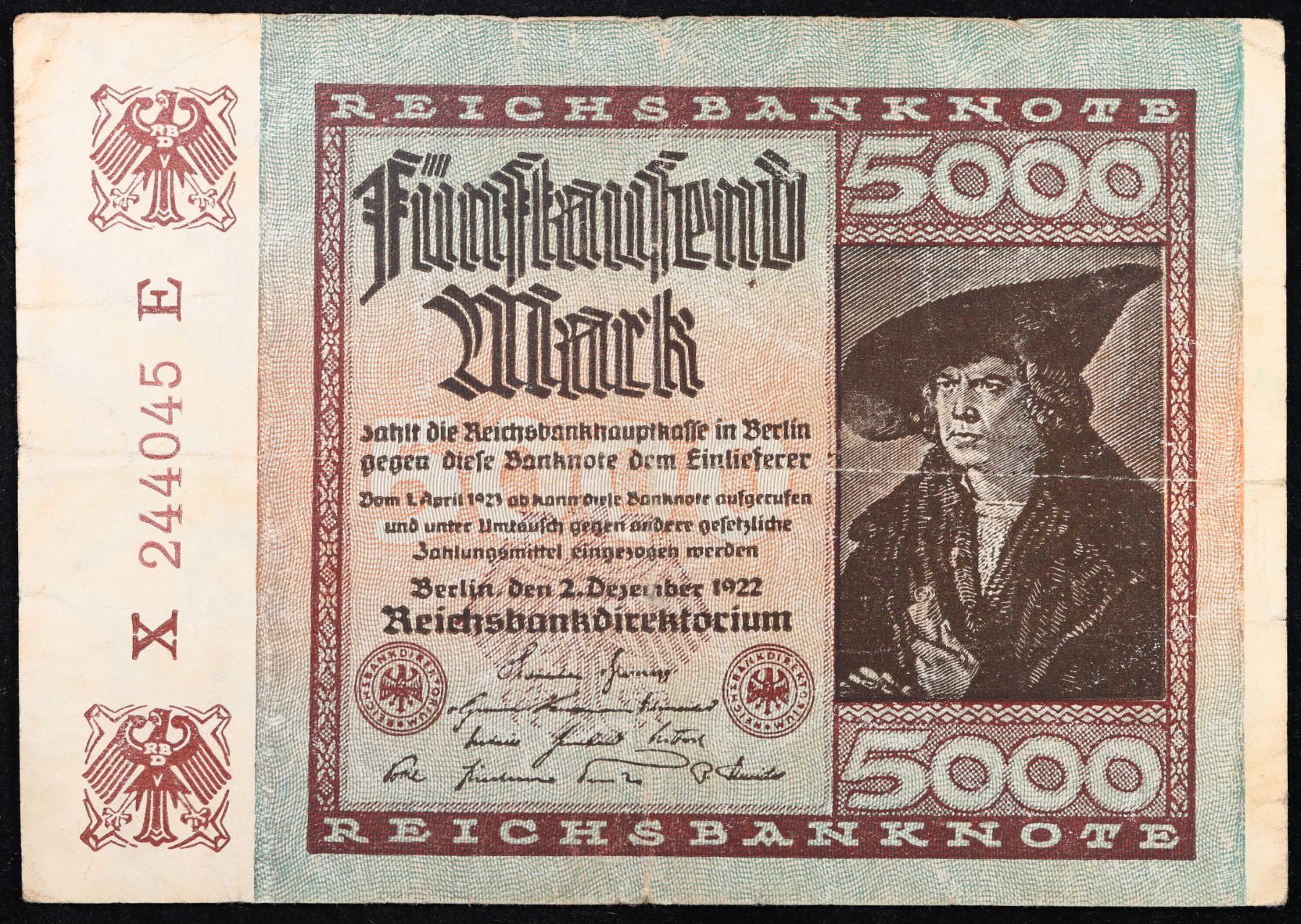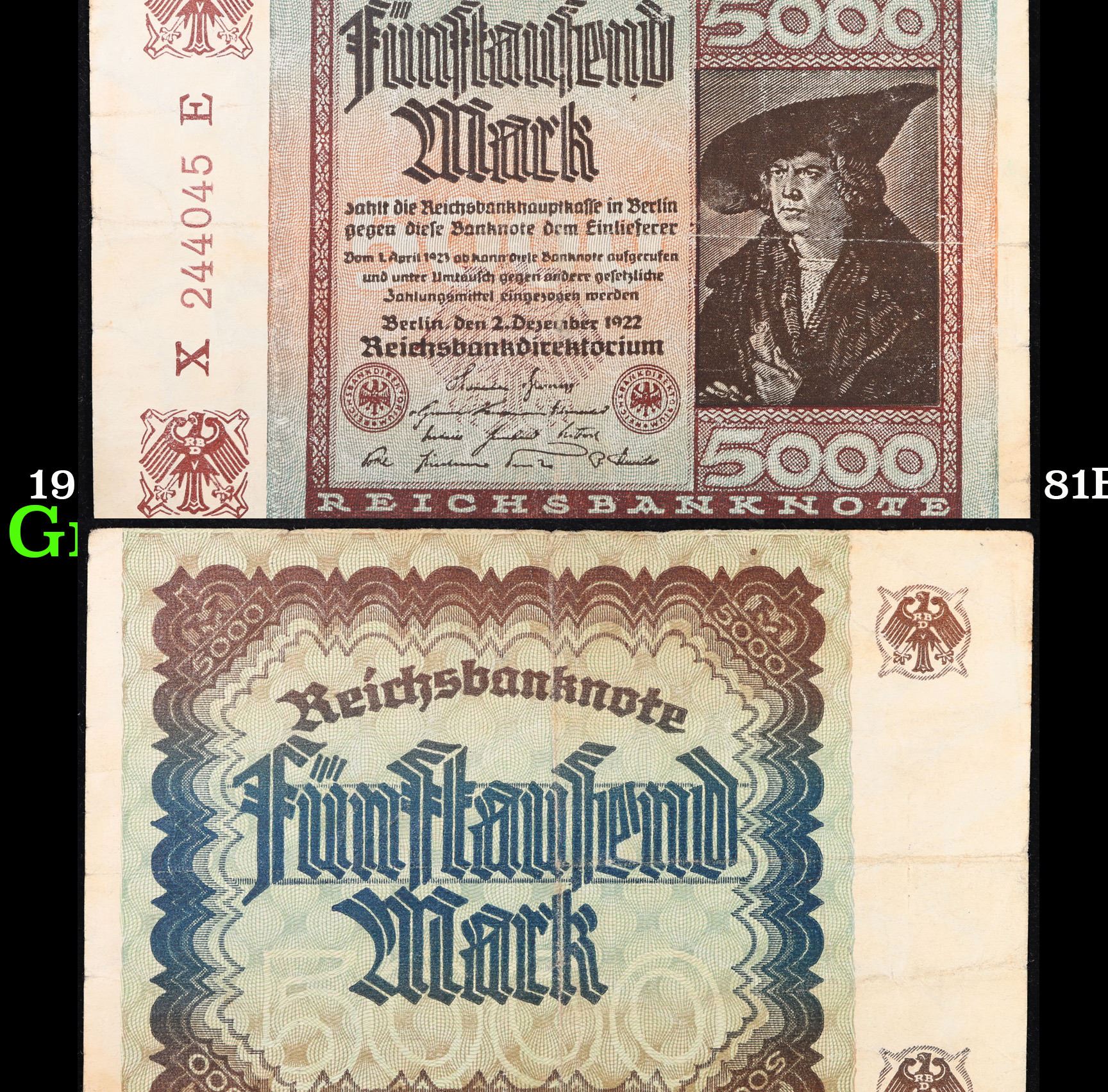 1922 Weimar Germany 5,000 Mark Note P: 81B Grades Choice AU/BU Slider.