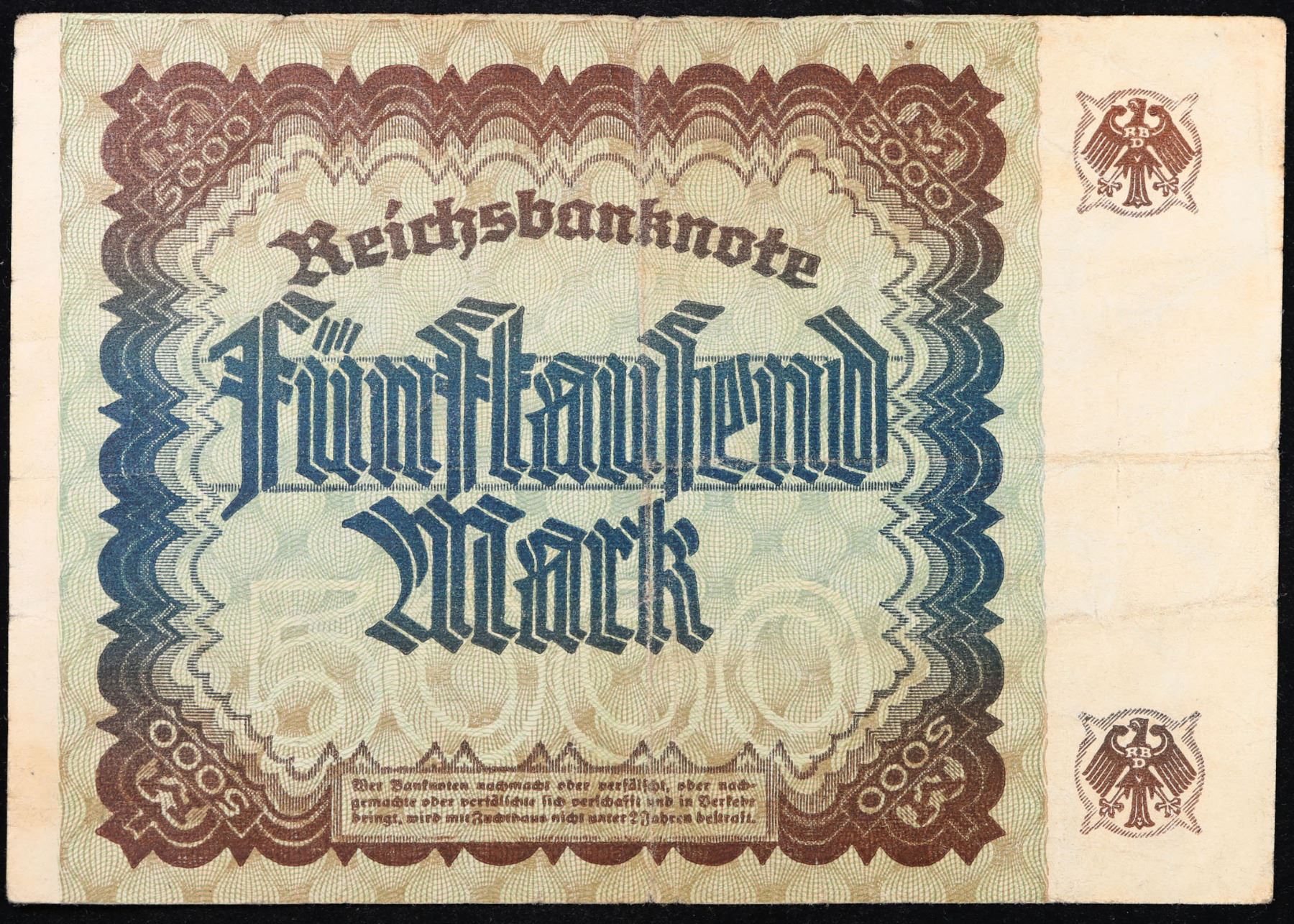 1922 Weimar Germany 5,000 Mark Note P: 81B Grades Choice AU/BU Slider
