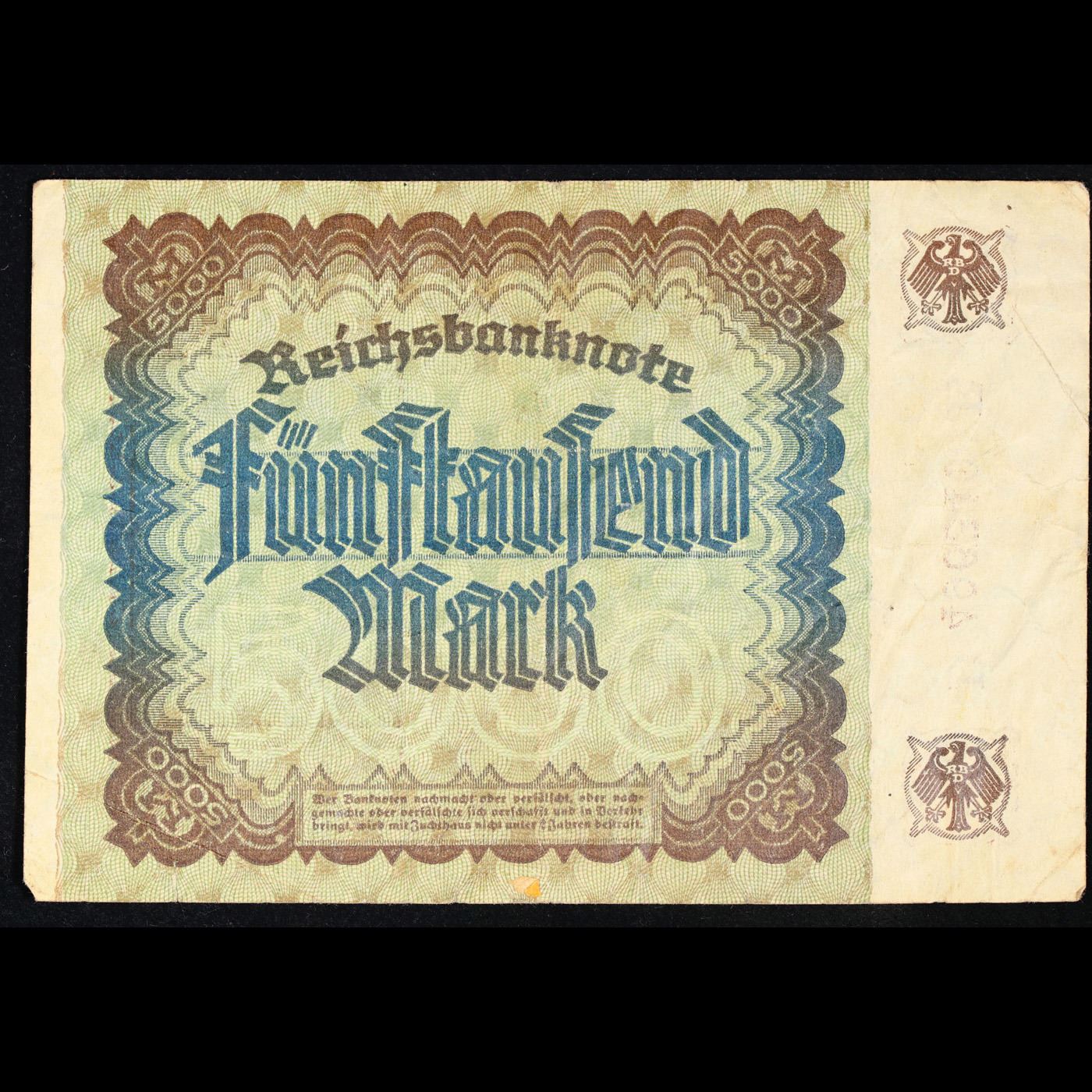 1922 Weimar Germany 5,000 Mark Note P# 81B Grades vf+