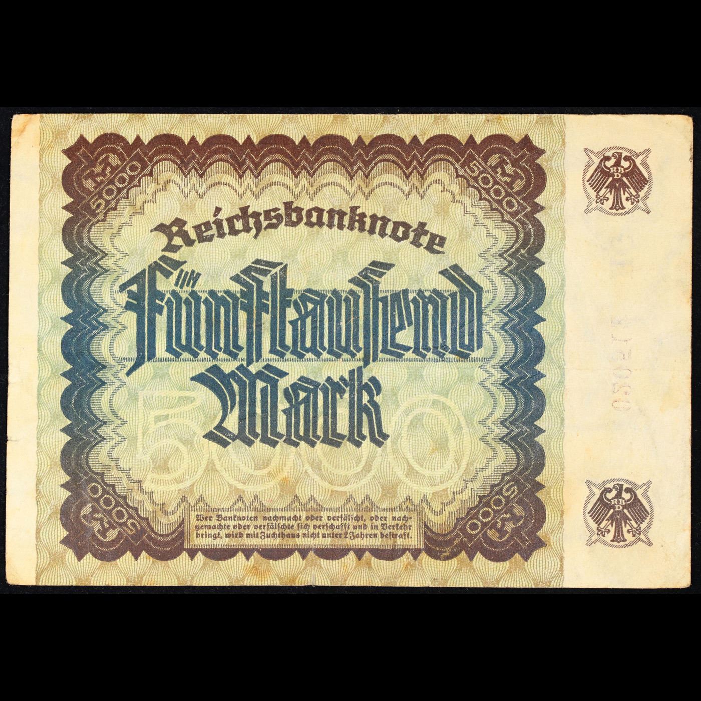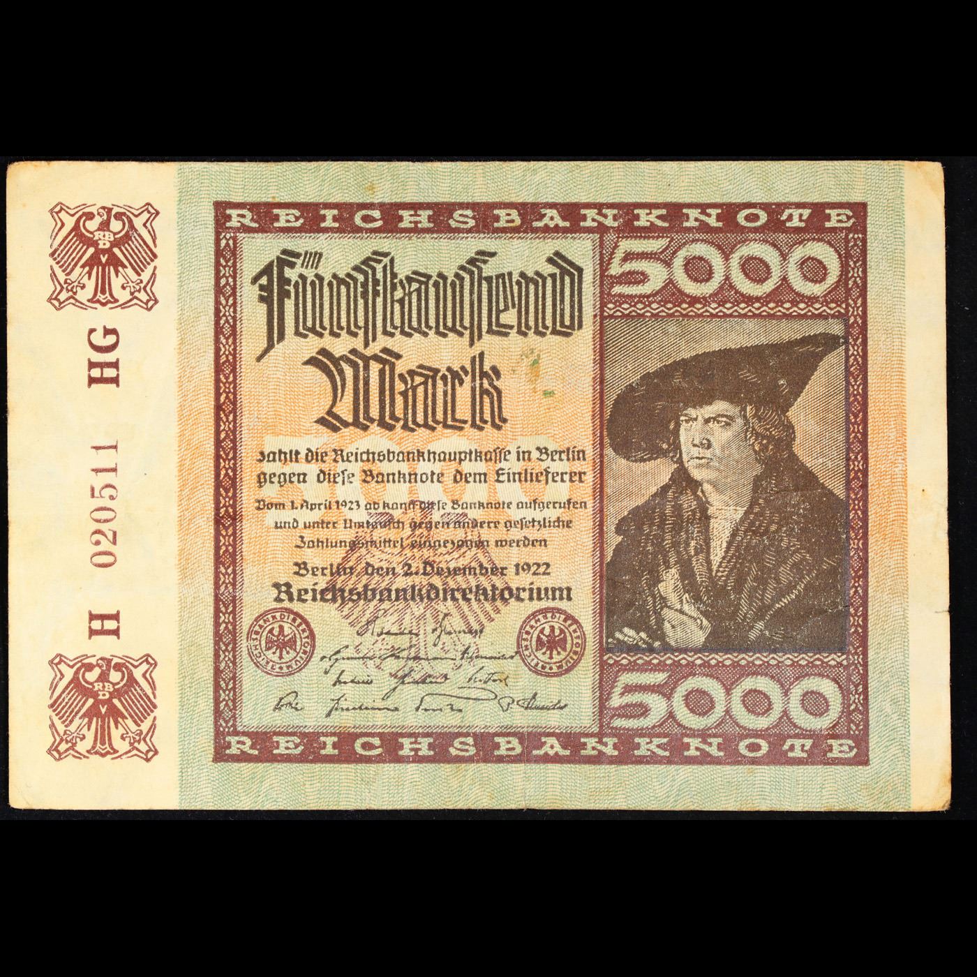 1922 Weimar Germany 5,000 Mark Note P# 81D Grades Choice AU/BU Slider