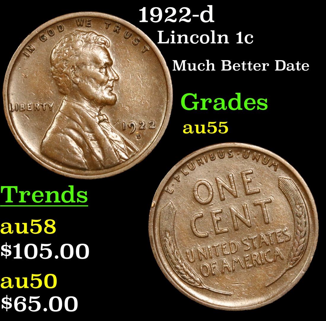 1922-d Much Better Date . Lincoln Cent 1c Grades Choice AU.