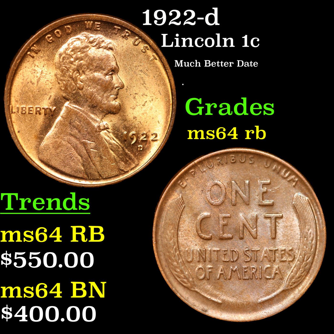 1922-d Lincoln Cent 1c Grades Choice Unc RB.