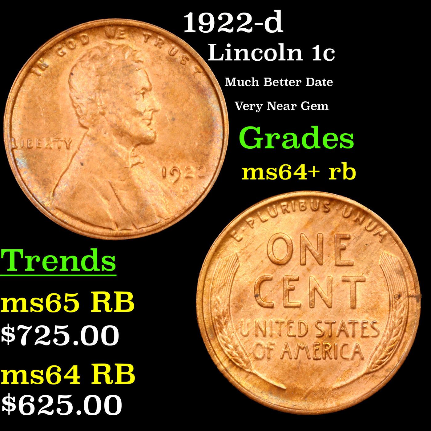 1922-d Lincoln Cent 1c Grades Choice+ Unc RB.