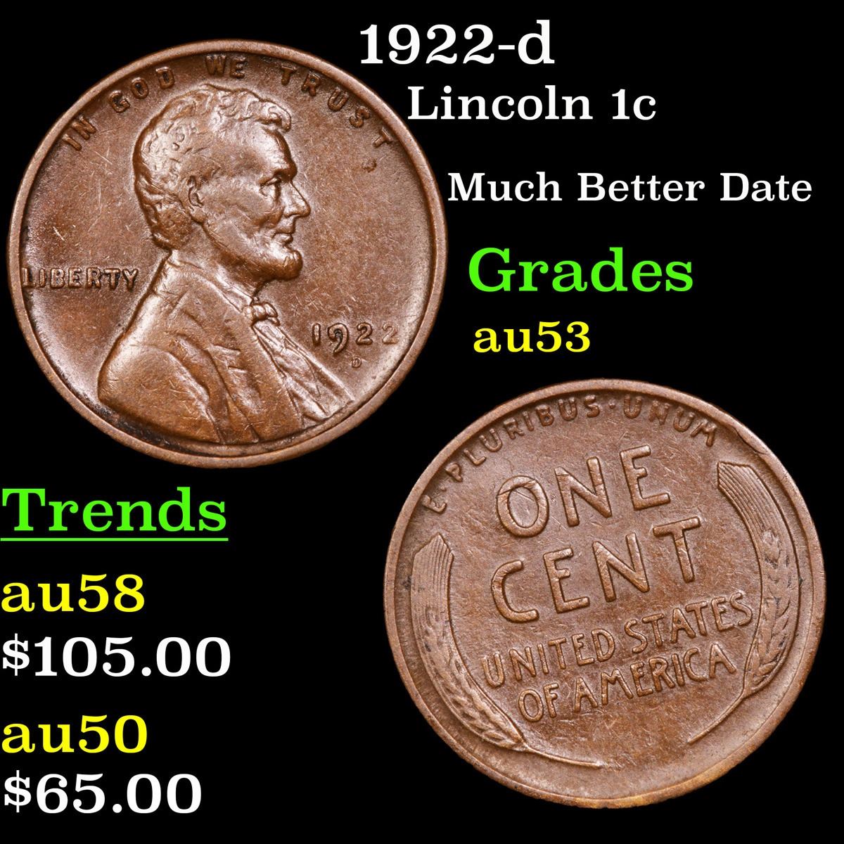 1922-d Much Better Date . Lincoln Cent 1c Grades Select AU.