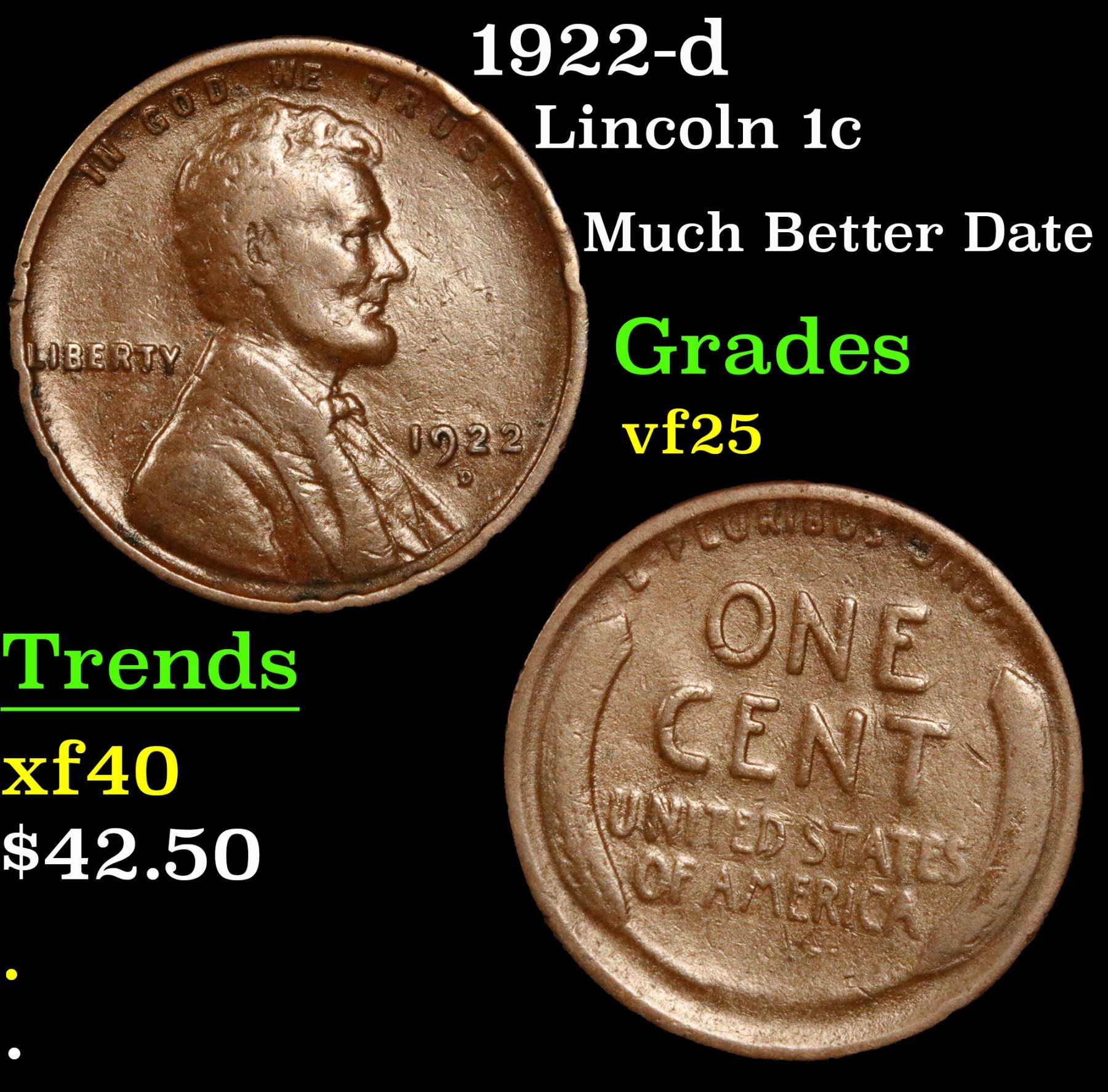 1922-d Much Better Date . Lincoln Cent 1c Grades vf+.