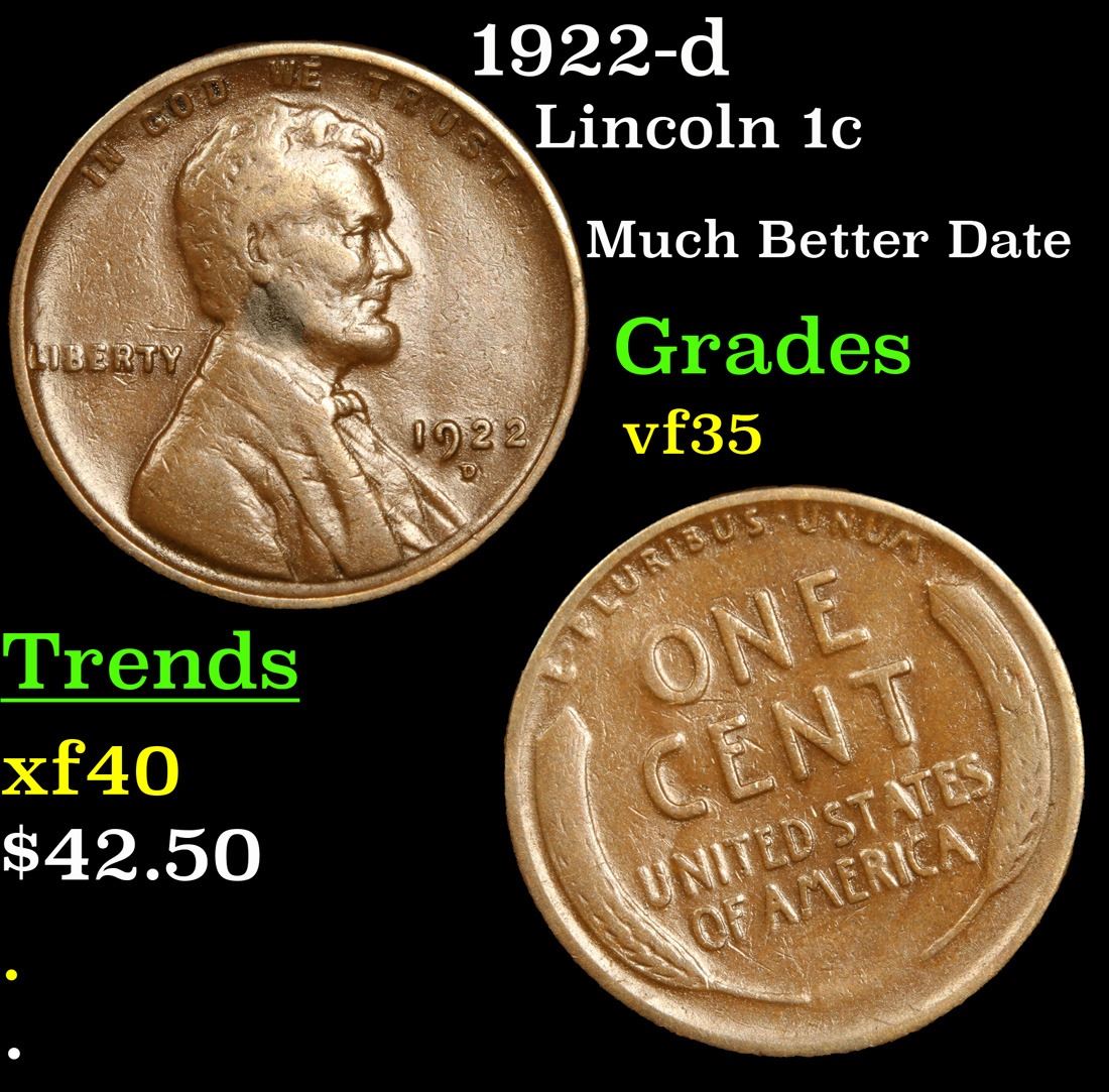 1922-d Much Better Date . Lincoln Cent 1c Grades vf++.