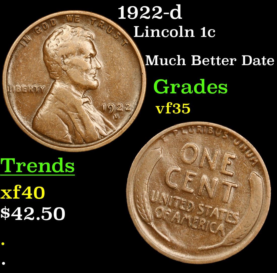 1922-d Much Better Date . Lincoln Cent 1c Grades vf++.