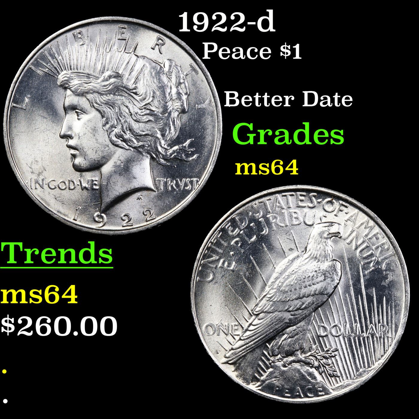 1922-d Peace Dollar $1 Graded Choice Unc.