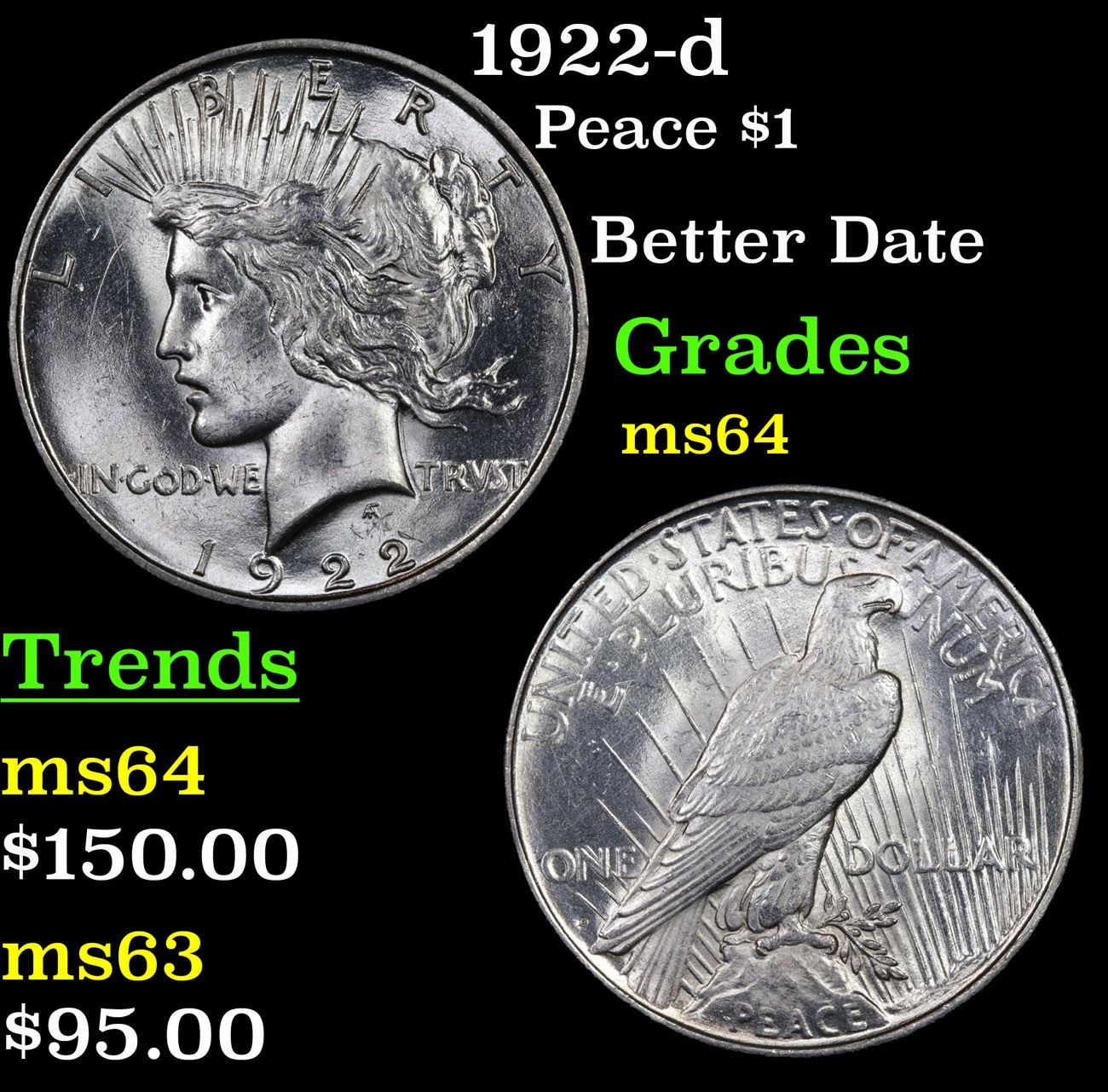1922-d Better Date . Peace Dollar $1 Grades Choice Unc.