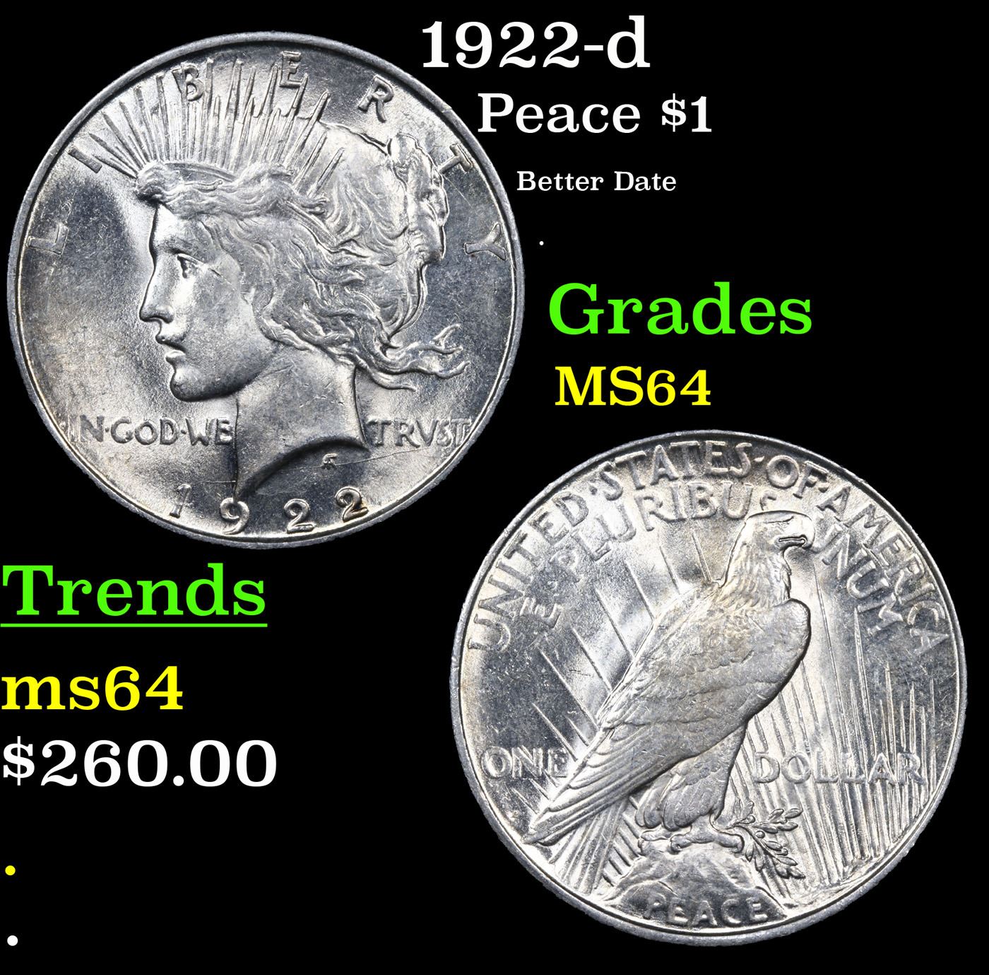 1922-d Peace Dollar $1 Grades Choice Unc.