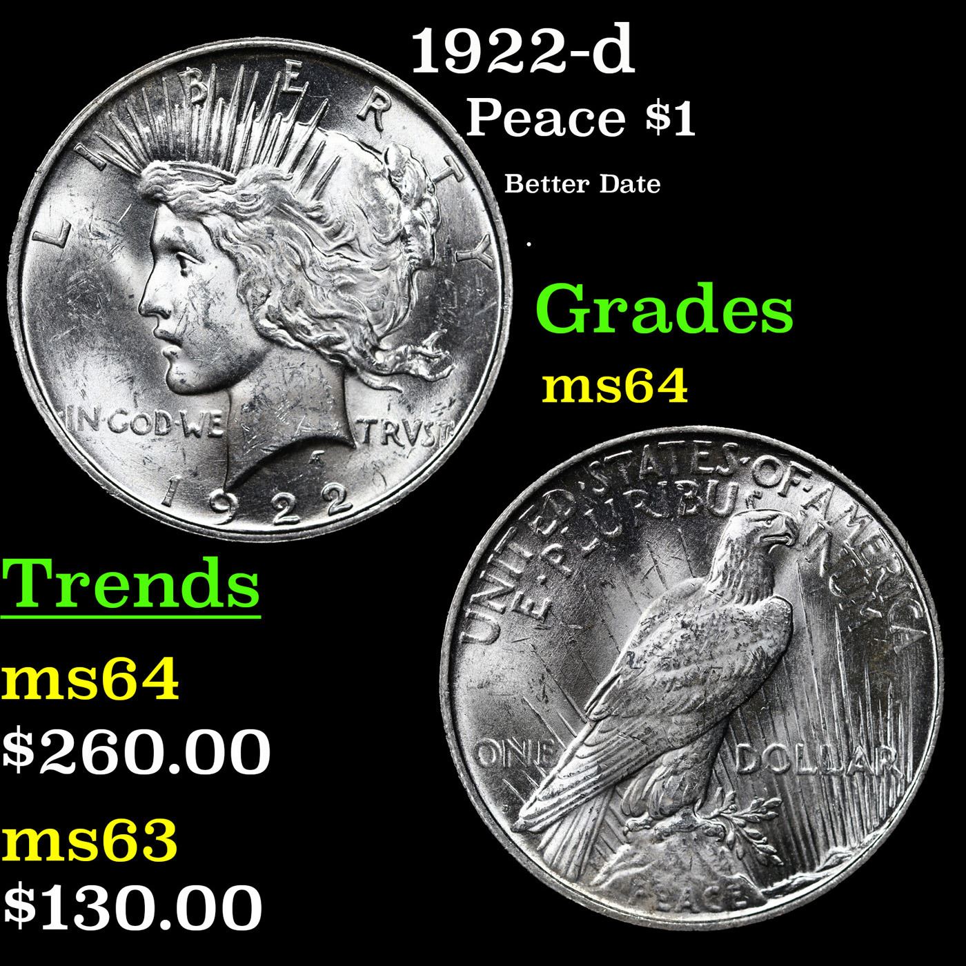1922-d Peace Dollar $1 Grades Choice Unc.