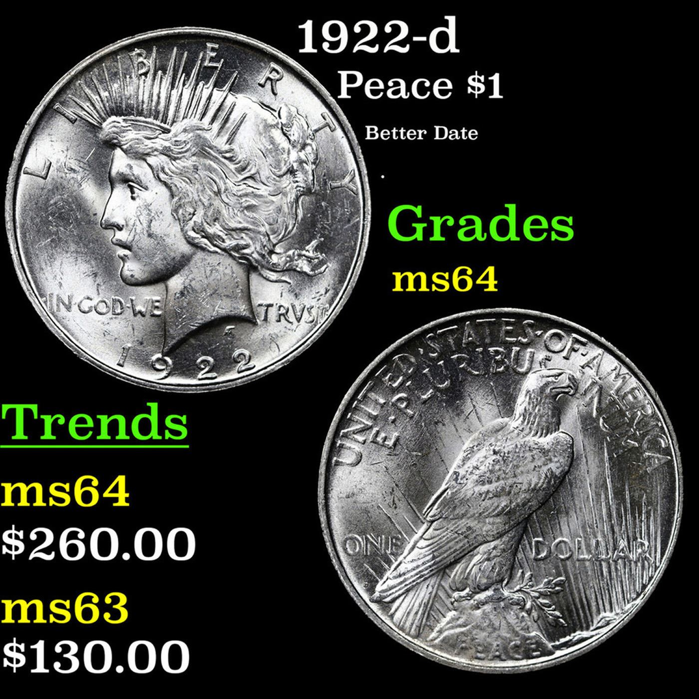 1922-d Peace Dollar $1 Grades Choice Unc.