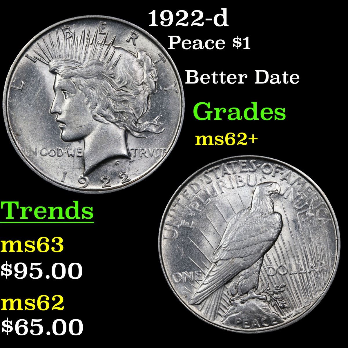 1922-d Peace Dollar $1 Grades Select Unc.