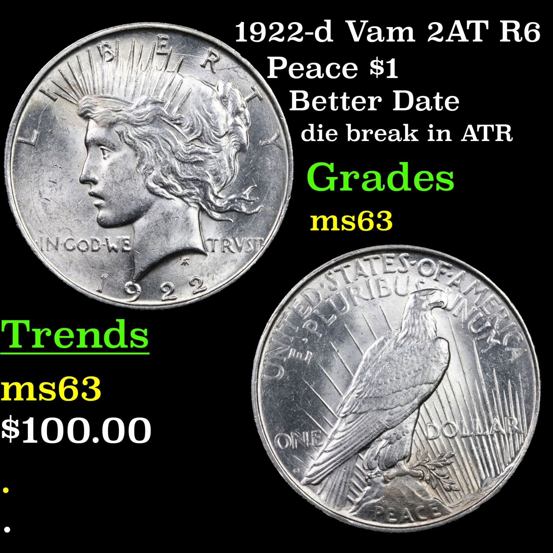 1922-d Vam 2AT R6 Peace Dollar $1 Grades Select Unc.