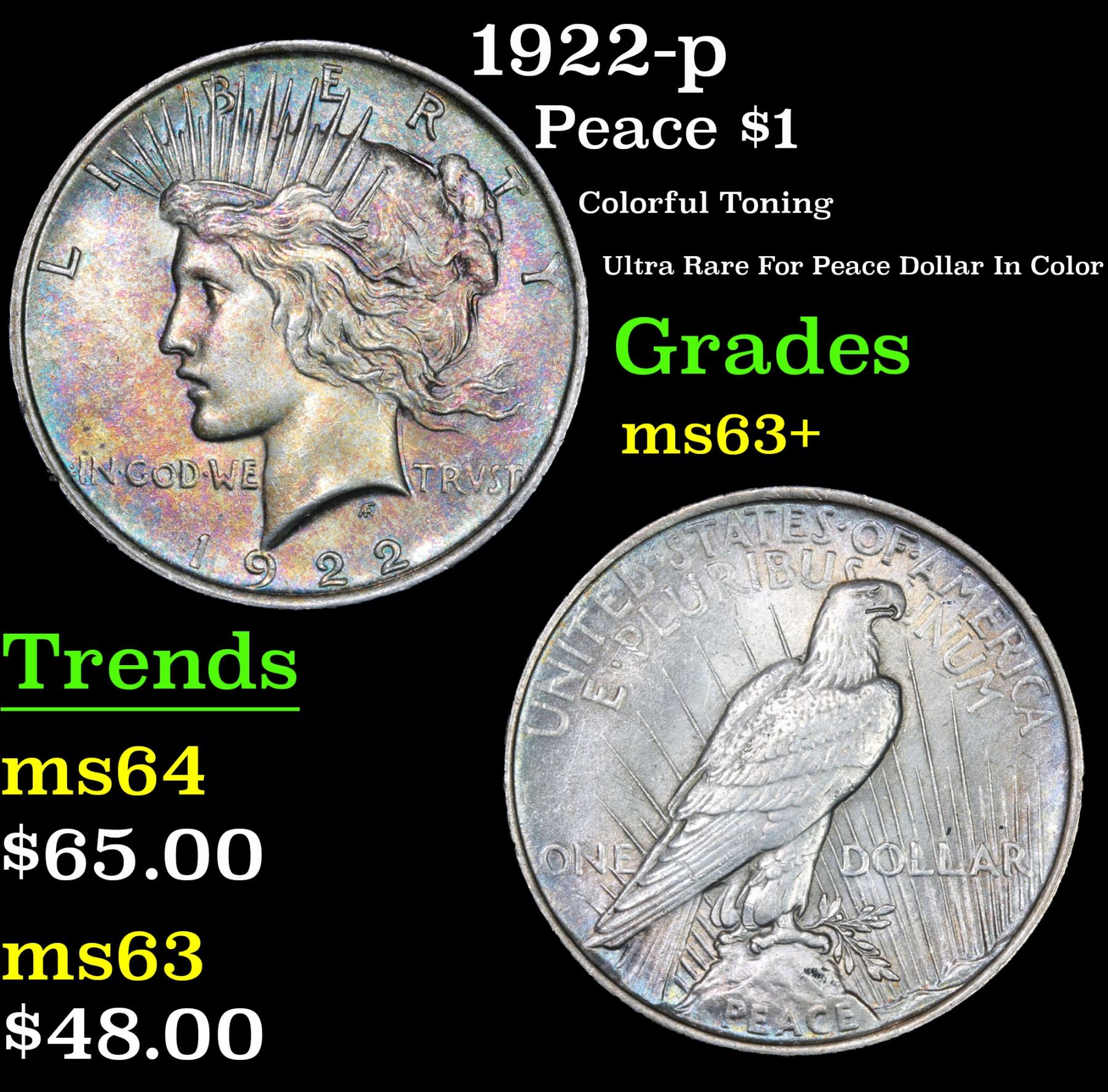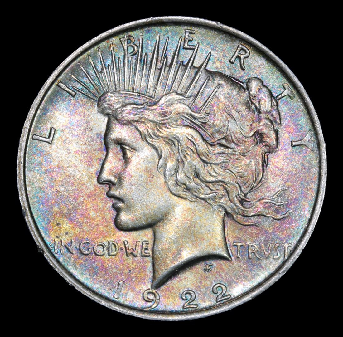 1922-p Colorful Toning Ultra Rare For Peace Dollar In Color Peace Dollar $1 Grades Select+ Unc. A Corey's Pick, Bid to Win, Don't let it get Away Coin